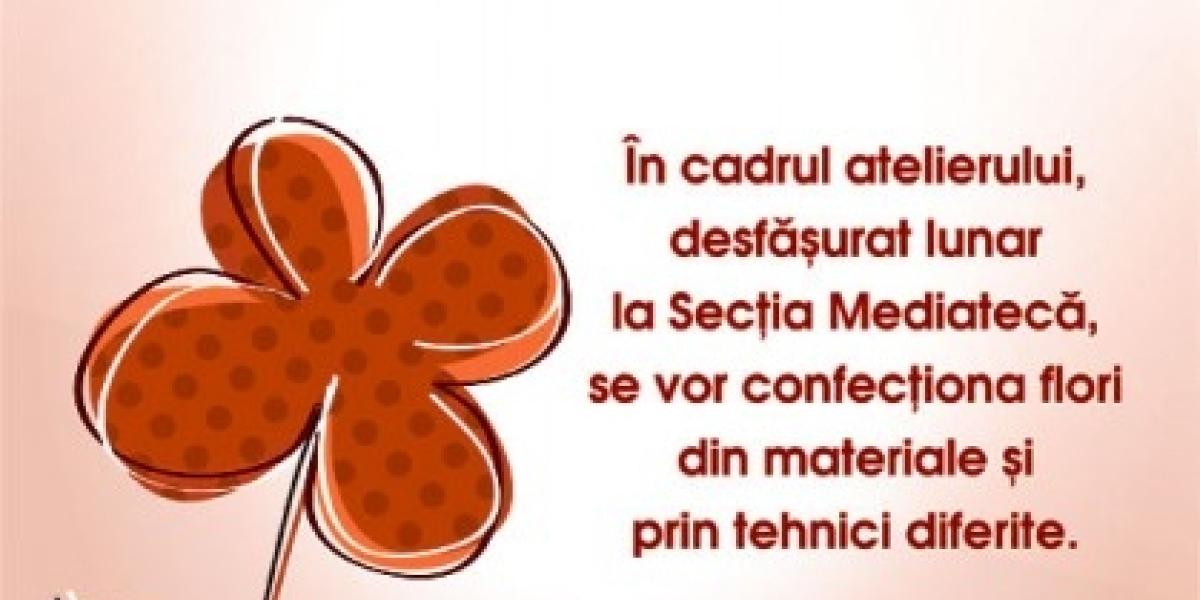 Sunt aşteptaţi să participe copiii cu vârsta de peste 9 ani, înscrierile făcându-se în limita a 15 locuri. Practic, micuţii vor confecţiona flori din diverse materiale şi prin tehnici diferite. Atelierul se desfăşoară la Secţia Mediatecă.