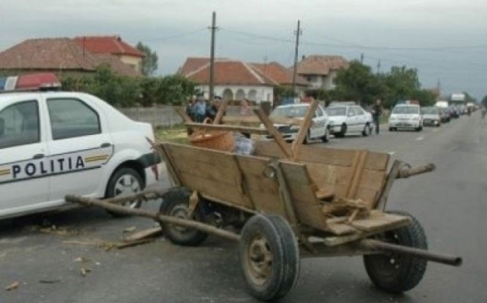 * acesta se afla într-o căruță peste care a dat o mașină, în urmă cu puțin timp