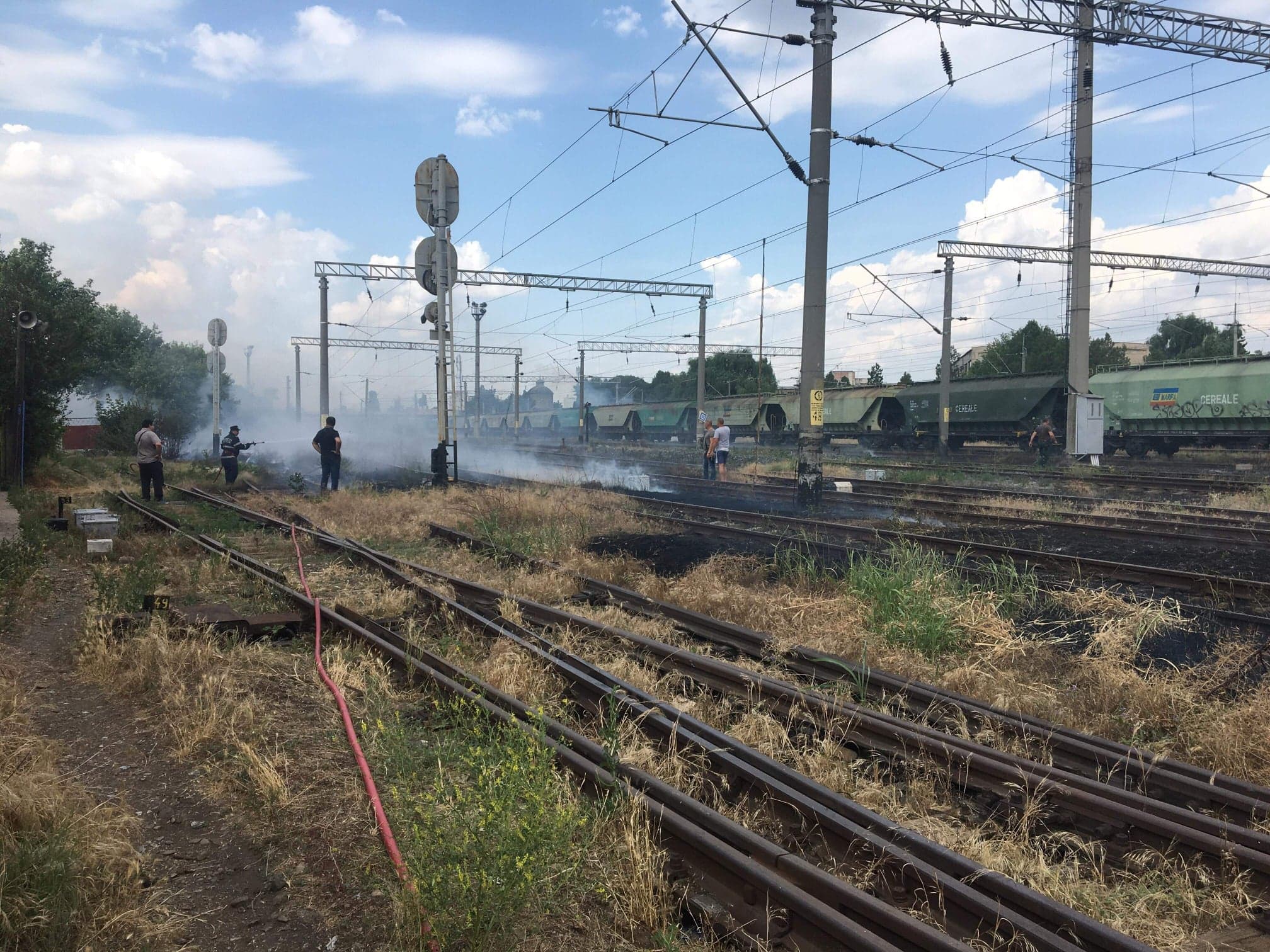 După cum au stabilit poliţiştii, nenorocirea a avut loc în jurul orei 16.00, când un minor de 14 ani, din Brăila, s-a urcat pe trenurile de marfă aflate în Triajul CFR, fiind electrocutat de liniile de înaltă tensiune. Mai mult, în zonă a izbucnit şi un incendiu de vegetaţie din cauza arcului electric format. Au intervenit și pompierii. Vom reveni.