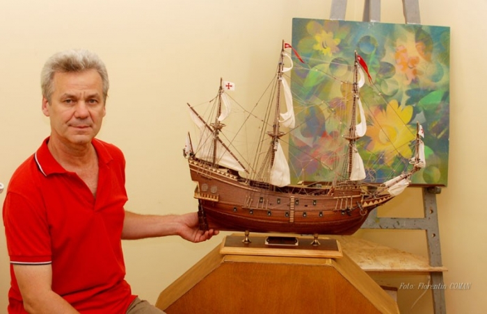 În prezent, Călin Tudor lucrează la Centrul de Creaţie din cadrul Consiliului Judeţean şi este un artist consacrat, cu numeroase expoziţii şi premii la activ. Experienţa dobândită de-a lungul anilor a contat enorm, atunci când, printr-o nostalgie de moment, a decis să se întoarcă la vechiul său hobby - machetele de corăbii. Totul a reînceput în 2010, când a văzut pe internet câteva machete realizate cu migală de alţi artişti din lumea largă. "Mi-am zis că dacă ei pot să facă aşa ceva, atunci cu siguranţă pot şi eu". Fiindcă pierduse oarecum contactul cu acest domeniu, artistul brăilean s-a bazat pe planurile şi piesele puse la dispoziţie de o revistă de specialitate. După ce s-a decis asupra machetei pe care urma să o construiască, a început să cumpere fiecare număr al revistei, ce venea însoţită de câteva schiţe şi piese. "A contat mult faptul că elementele componente erau gata făcute, tăiate perfect cu instrumente speciale, cu laser. Dacă făceam eu, la traforaj, acele piese, era mult mai complicat. Dar nici aşa nu trebuie să creadă cineva că a fost uşor. În domeniul ăsta, mulţi încearcă să facă o machetă, dar foarte puţini reuşesc să o ducă până la capăt. Recunosc că şi eu am avut momente când îmi venea să renunţ. Trebuie multă migală, răbdare şi pricepere. Şi ochi de artist, aş putea spune, fără falsă modestie. A durat doi ani, din 2010 până în 2012, ca să fac această machetă de galion spaniol, corabie cu trei catarge, de secol XVI. Pe lângă piesele de la revistă a trebuit să confecţionez personal multe elemente, pentru ca lucrarea finală să respecte în cel mai mic detaliu corabia originală. M-am documentat foarte riguros şi a ieşit ce a ieşit. Toţi specialiştii care au văzut-o m-au felicitat şi au recunoscut că foarte greu reuşeşte cineva să facă o machetă atât de bună. Totul stă în detalii. Dacă reuşeşti să tensionezi exact atât cât trebuie fiecare aţă care reproduce parâmele originale, dacă tunurile în miniatură sunt aliniate perfect, dacă toate catargele sunt aşezate la linie şi toate velele sunt puse pe poziţie, atunci poţi spune că ai reuşit", ne-a mărturisit Călin Tudor.