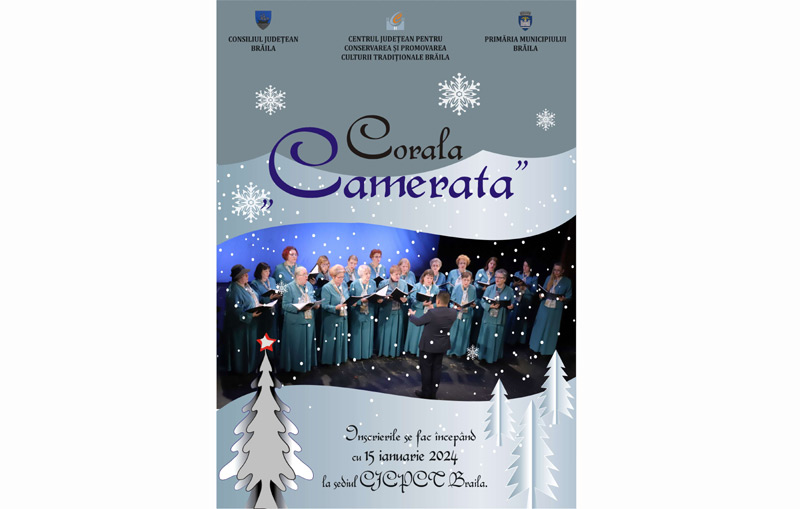 Persoanele care doresc să devină membre ale Coralei „Camerata” a Centrului Județean pentru Conservarea și Promovarea Culturii Tradiționale Brăila sau cei ce doresc să-și dezvolte auzul muzical, vocea, simțul ritmic, memoria muzicală și aptitudinile interpretative se pot înscrie la sediul Centrului de Creație, din municipiul Brăila, Piața Traian, nr. 2. Înscrierile au început încă de luni, 15 ianuarie 2024 și vor continua pe tot parcursul anului.