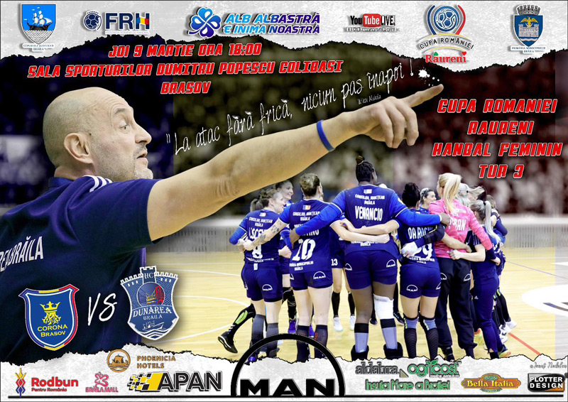 Astăzi sunt programate sferturile de finală ale Cupei României la handbal feminin, fază în care HC Dunărea va juca în deplasare, de la ora 18.00, la Corona Brașov, formație care conduce detașat în clasamentul Seriei B, a Diviziei A.