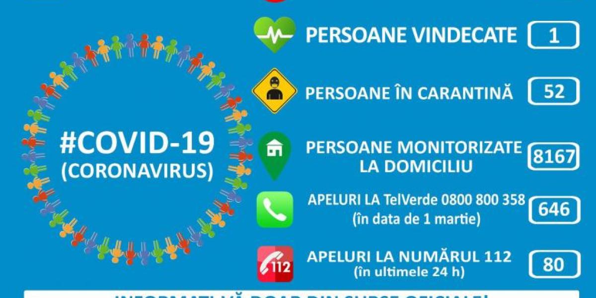 În continuare, la nivel național sunt în carantină în centre instituționalizate 52 persoane, iar 8.167 de persoane sunt monitorizate la domiciliu. Le recomandăm cetățenilor care sunt monitorizați la domiciliu să respecte regulile de izolare, să nu părăsească spațiile stabilite și să păstreze permanent legătura cu autoritățile sanitare din zona în care se află.