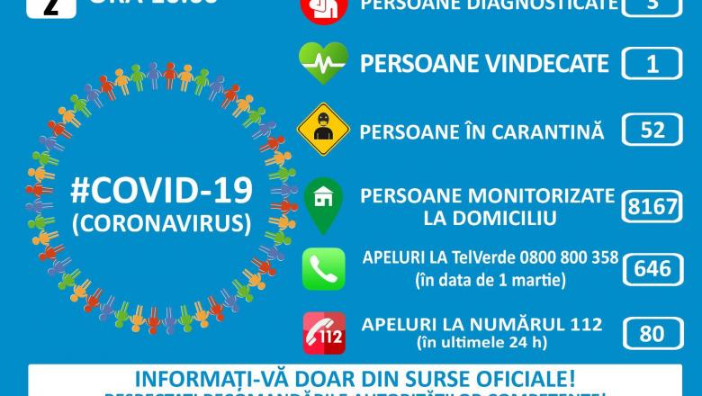 În țara noastră, până în prezent, 3 persoane au fost diagnosticate cu COVID-19, dintre care o persoană a fost declarată vindecată după ce testele realizate conform procedurilor medicale au fost negative.