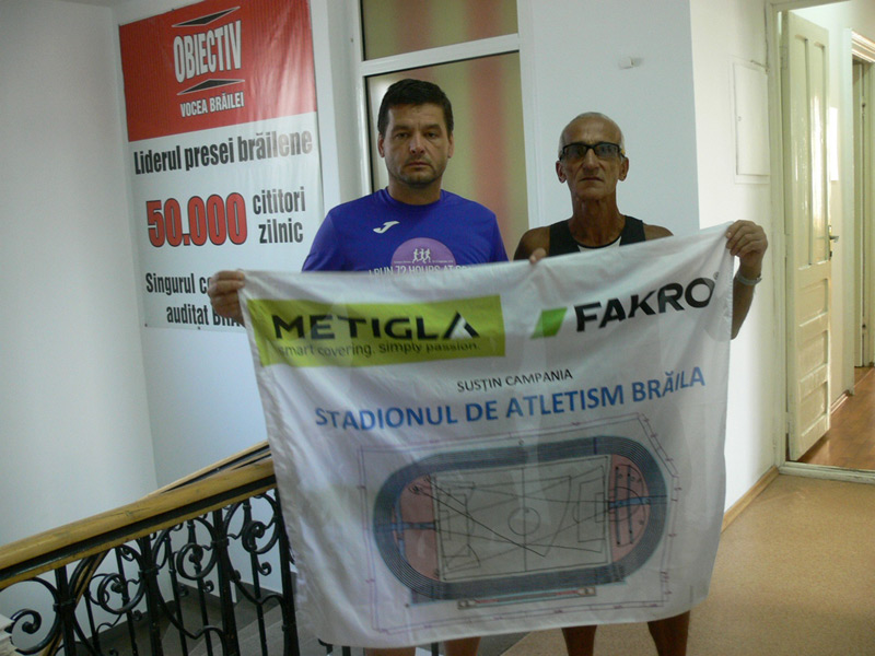 Cei doi atleţi veterani au alergat pentru campania “Descoperă stadionul de atletism Brăila”.