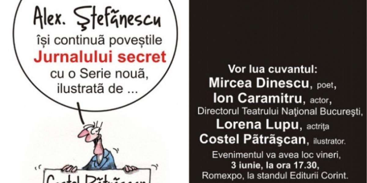 Pentru toţi iubitorii de carte cu simţul umorului, Alex Ştefănescu lansează şi o invitaţie pe măsură: "Vineri, 3 iunie, la 17:30, chiar dacă aveţi treabă, lăsaţi-o baltă şi veniţi la Romexpo, la standul Editurii Corint, nu pentru mine, ci pentru invitaţii mei, toţi oameni extraordinari: Ion Caramitru, Mircea Dinescu, Lorena Lupu, Costel Pătrăşcan. Eu, autorul cărţii care se va lansa atunci (JURNAL SECRET, SERIE NOUĂ) nu voi face decât să-i ascult şi, la sfârşit, să dau autografe.