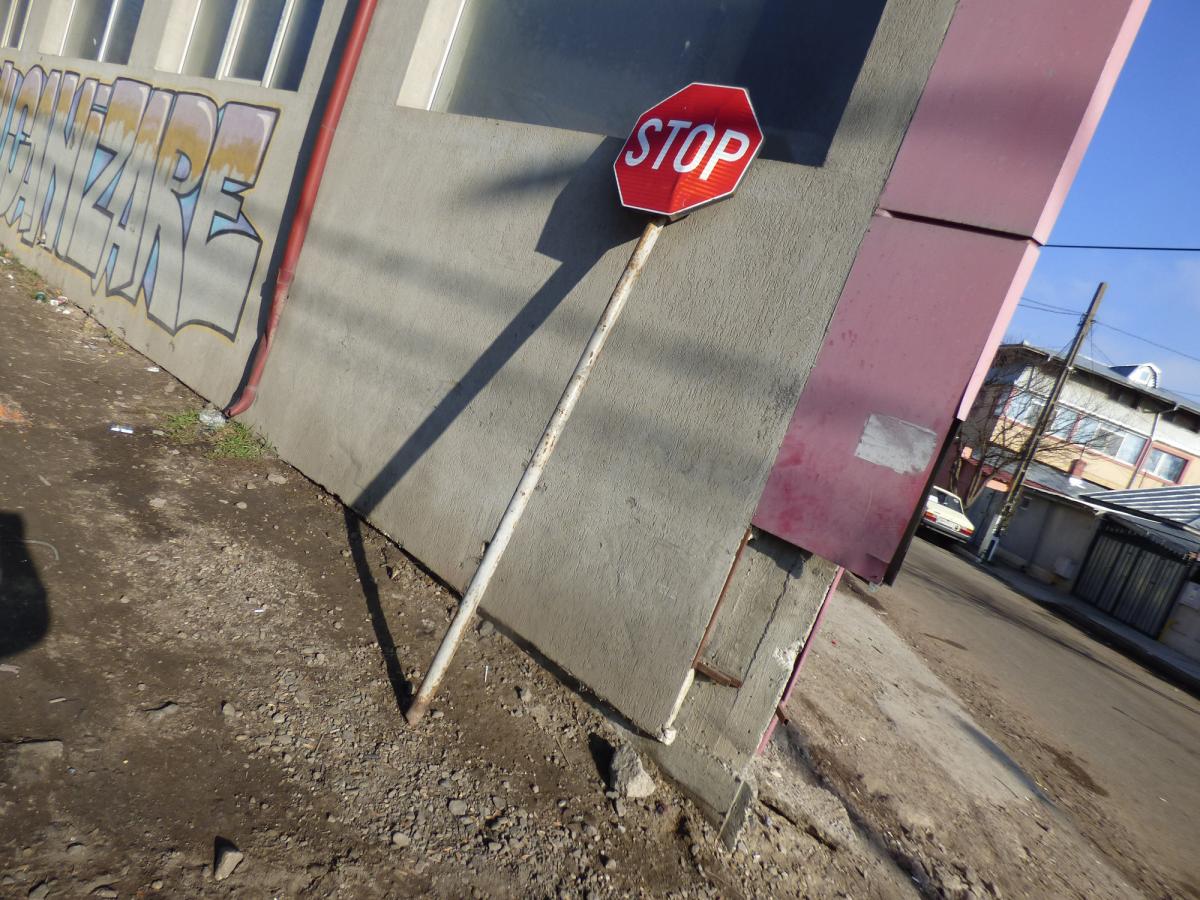 La o privire mai atentă, se vedeau şi alte “inadvertenţe”: indicatorul de intrare în Brăila, care duminică fusese pus la pământ, luni era fixat superficial, iar un alt indicator STOP, smuls cu totul , stătea sprijinit de peretele unui service-auto; grămezi de asfalt “îngheţat” sau împins pe spaţiul verde; pământ şi resturi vegetale (crengi) împinse şi ele, cu “lama”, dar în şanţ, dincolo de acostament.