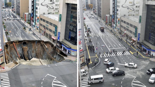 Autorităţile din oraşul japonez Fukuoka, unde o groapă uriaşă a înghiţit o intersecţie întreagă, au reparat şoseaua în numai câteva zile zile, iar zona a fost redeschisă traficului, relatează The Guardian, scrie News.ro.