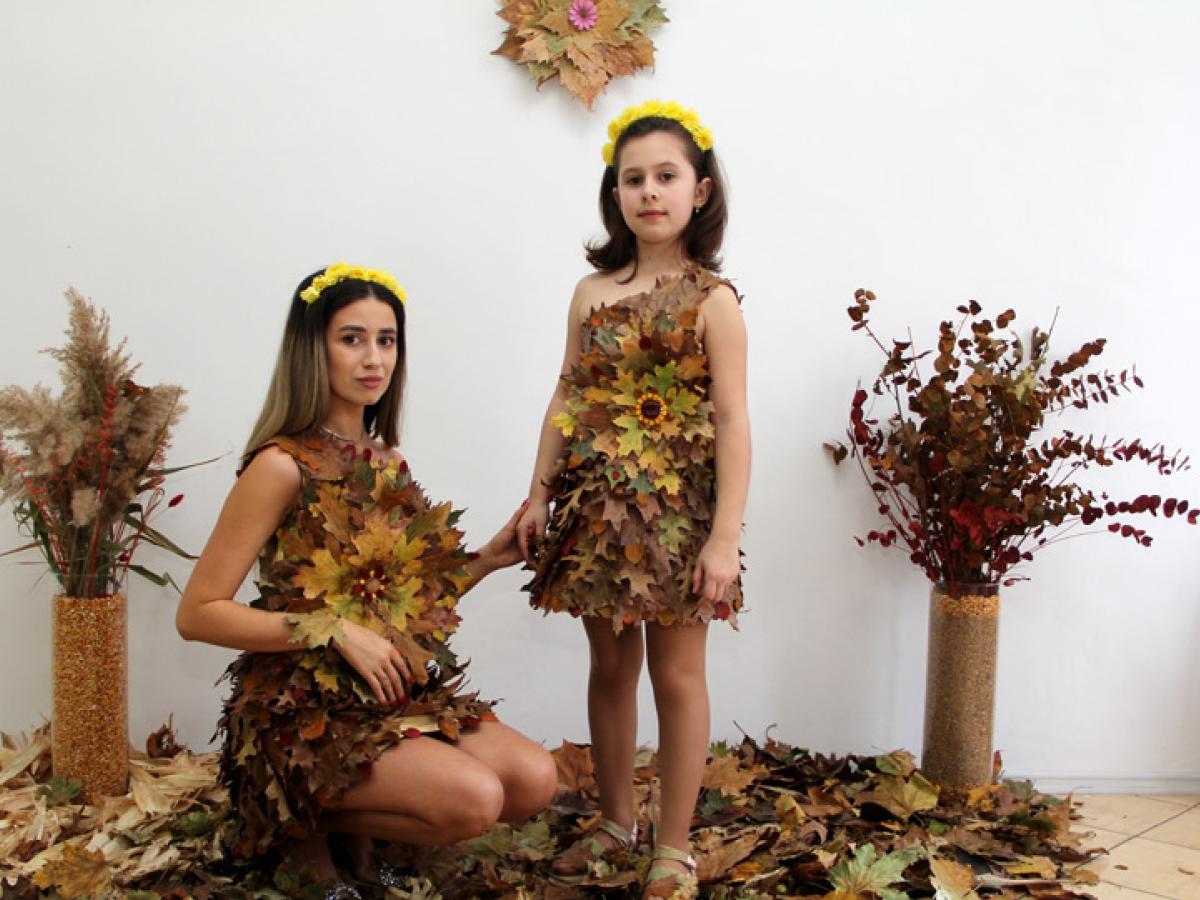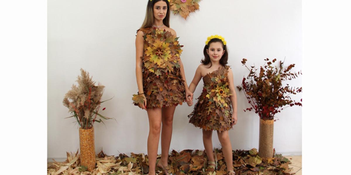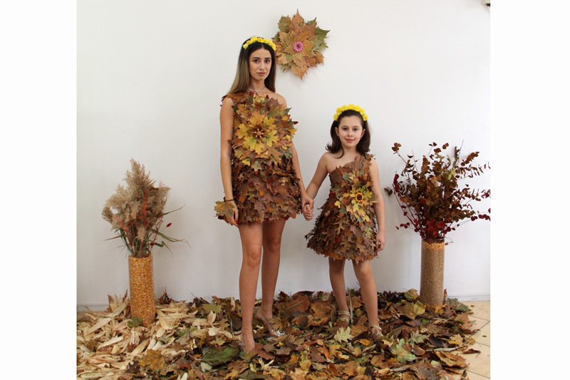 • dacă nu ați ghicit încă cine este în spatele lor, ei bine aflați că este tot Raluca Constantin, designerul vestimentar din Brăila care ne-a obișnuit deja cu spectaculosul și ineditul în creațiile sale • acum, vedetele atelierului său sunt două rochițe, mamă-fiică, confecționate din aproximativ 1.000 de frunze, care vin în completarea colecției sale ”Anotimpuri” • de această dată însă, meritul nu-i aparține în totalitate
