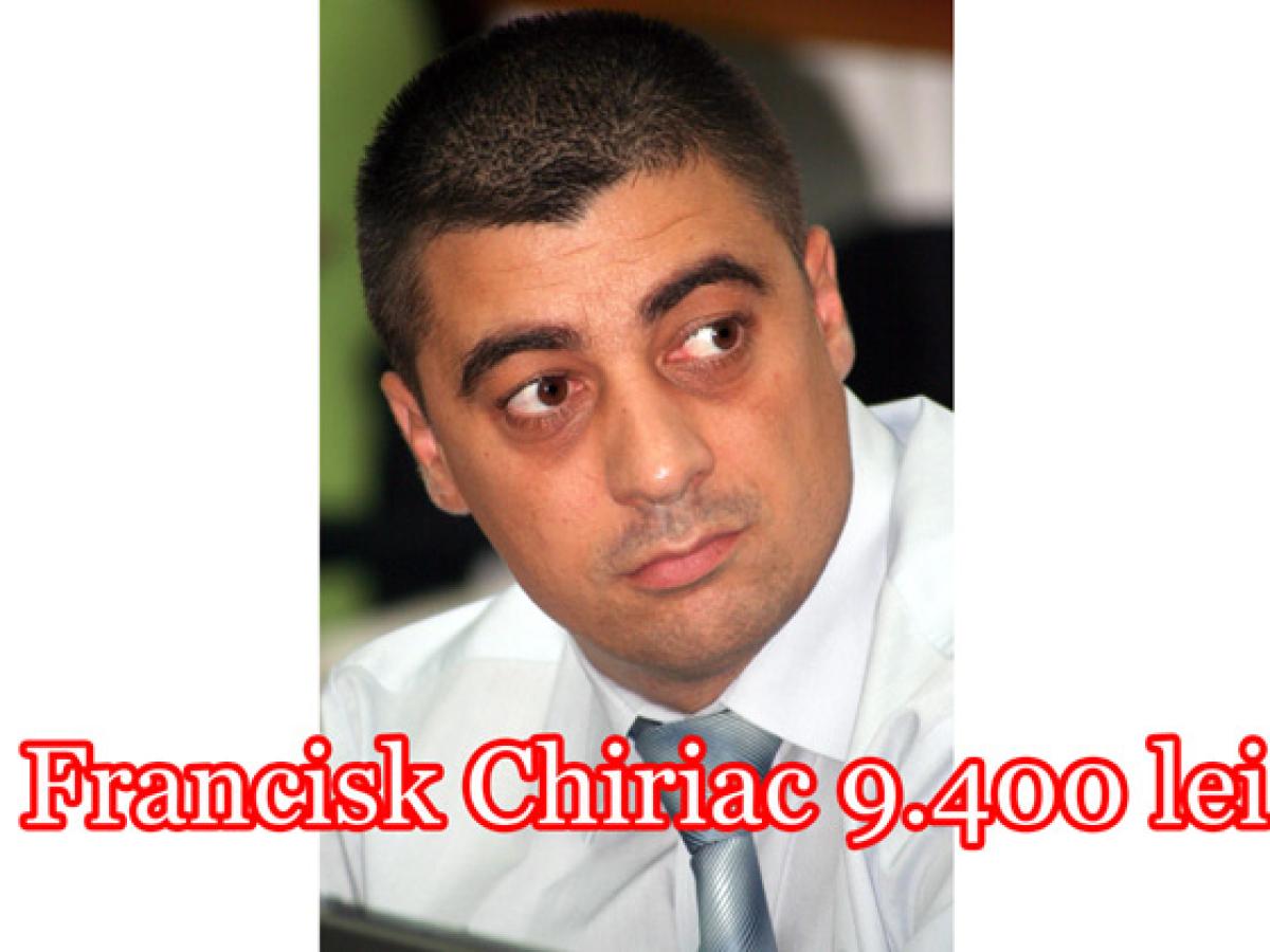 La Consiliul Judeţean, venitul lunar al preşedintelui Francisk Chiriac va creşte de la 7.240 lei la 9.412 lei şi va rămâne în continuare pe primul loc în clasamentul salariilor la nivel brut. Vicepreşedinţii Ionel Epureanu şi Cătălin Murea vor avea o creştere a salariului de la aproximativ 6.000 lei la 7.800 lei şi urcă pe locul doi în topul lefurilor din CJ. Pe locul trei se află secretarul judeţului Dumitrel Priceputu, cu o indemnizaţie de 5.952 lei. Urmează apoi arhitectul-şef al judeţului, Costel Drăgan cu circa 4.500 lei, un director executiv cu 4.300 lei şi un director executiv adjunct cu aproximativ 4.000 lei. Leafa unui şef birou este de circa 3.700 lei, iar cea a unui şef serviciu, de 3.500 lei, cu precizarea că toate aceste sume reprezintă salarii brute.
