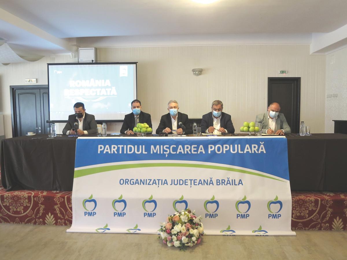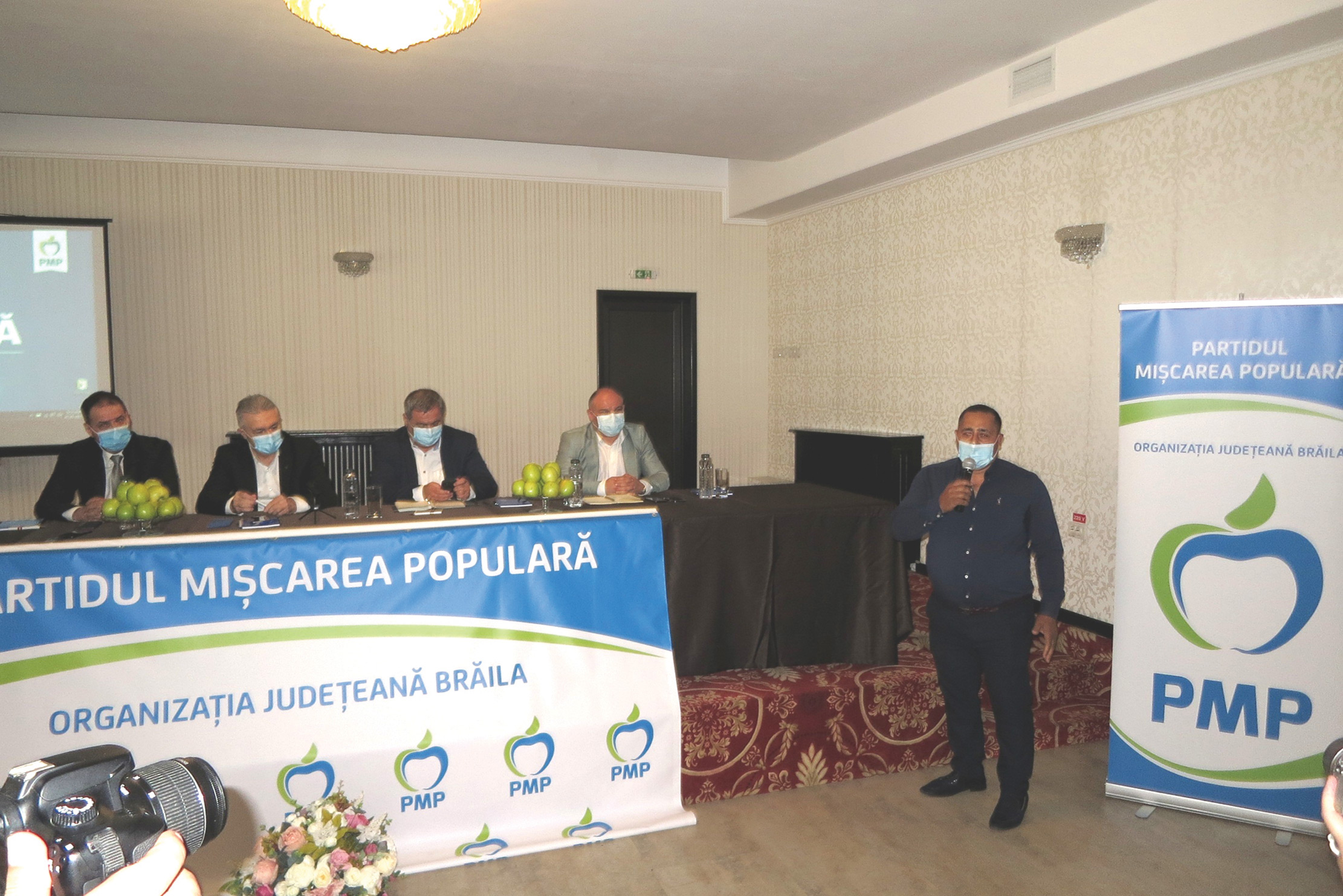* popularii brăileni s-au întâlnit, ieri, la Regal Ballroom (fostul Club Progresul), în prezența președintelui de la Centru, Cristian Diaconescu * acesta a venit în Brăila pentru a sta de vorbă cu colegii de partid în legătură cu organizarea pentru Alegerile Parțiale ce vor avea loc luna viitoare în comuna Viziru, pentru funcția de primar * opțiunea PMP este Ionel Stoican, consilier local Viziru și președintele filialei din localitate, membru al comunității rome, după cum s-a prezentat chiar acesta