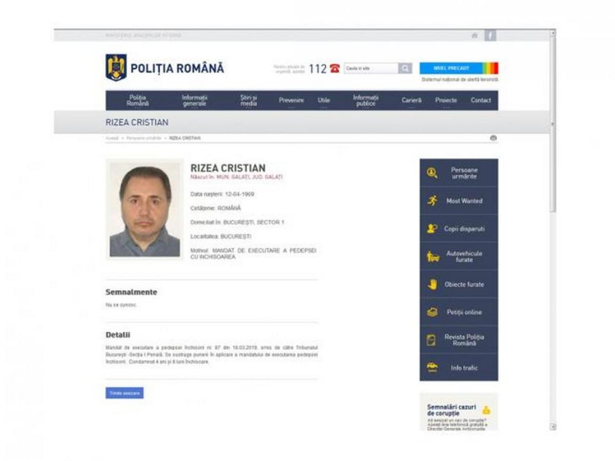 Fostul deputat de Brăila, Cristian Rizea, a fost declarat „dispărut” încă din luna martie, după ce Înalta Curte de Justiţie l-a condamnat definitiv la 4 ani şi 8 luni de închisoare pentru corupţie. Rizea ar avea puține ieșiri publice în capitala Republicii Moldova și puține legături, tocmai pentru a se proteja. Conform sursei citate, fostul deputat de Brăila ar avea cetățenie dublă. De asemenea, Mediafax.ro precizează că surse din cadrul Poliției Române au recunoscut că există informații potrivit cărora Rizea într-adevăr s-ar afla în Chișinău, însă fără o confirmare oficială din partea autorităților din Republica Moldova.