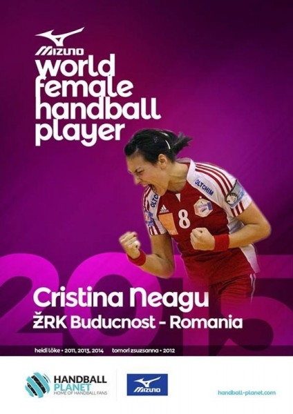 Cristina Neagu a cucerit în acest an, cu selecţionata României, medalia de bronz la Campionatul Mondial de handbal feminin, unde a fost desemnată cea mai bună jucătoare a turneului, fiind totodată una dintre componentele de bază ale lui Buducnost Podgorica în campania câştigătoare din Liga Campionilor ediţia 2014/2015.