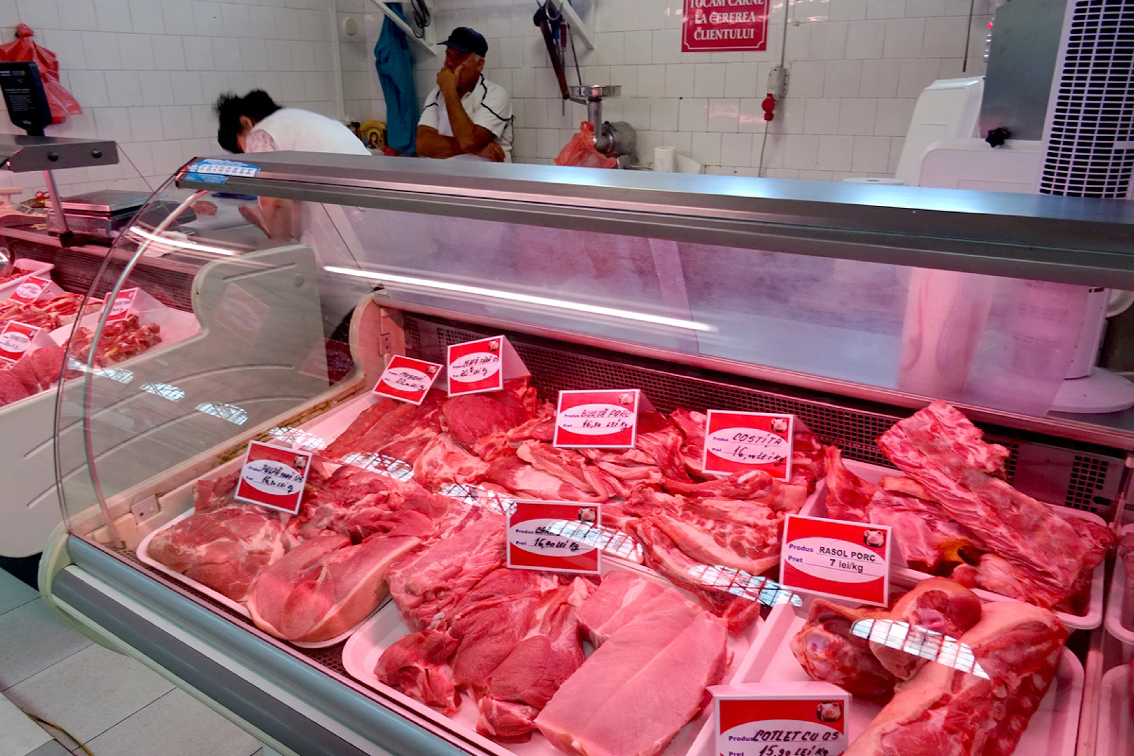 • vitrinele frigorifice din pieţele brăilene sunt pline de carne, comercianţii spunând că reuşesc să se aprovizioneze fără probleme • chiar dacă în cele două mari ferme de porci, de la Gropeni şi Tichileşti, a pătruns virusul pestei, iar efectivele sunt în curs de lichidare, există în judeţ ferme mai mici care nu au fost afectate până în prezent • la Deduleşti este una dintre ele, deţinută de doi italieni, care au ales să investească acolo deoarece ferma nu se află lângă niciun curs de apă important • logica acestei decizii pare de înţeles la ora actuală, după ce au apărut informaţii că în fermele din Gropeni şi Tichileşti virusul a pătruns prin intermediul apei din Dunăre • în ceea ce priveşte carnea de porc în pieţele brăilene, deşi galantarele sunt pline, vânzările au mai scăzut, deoarece unii clienţi se tem de existenţa virusului pestei • în încercarea de a-şi convinge muşteriii să cumpere carne, comercianţii au mai lăsat puţin la preţ