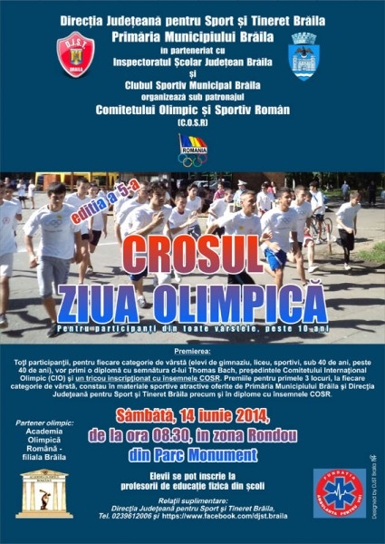 "Crosul contribuie la apropierea locuitorilor Brăilei de fenomenul sportiv, de plăcerea de a practica sportul şi mişcarea, contribuind în acelasi timp la cultivarea valorilor olimpismului. La fel ca în anii precedenţi, crosul "Ziua Olimpică" este o manifestare sportivă patronată de Comitetul Olimpic şi Sportiv Român şi se desfăşoară în toata ţara, pe tot parcursul lunii iunie", se specifică în comunicatul DJST.