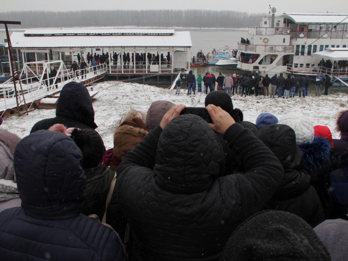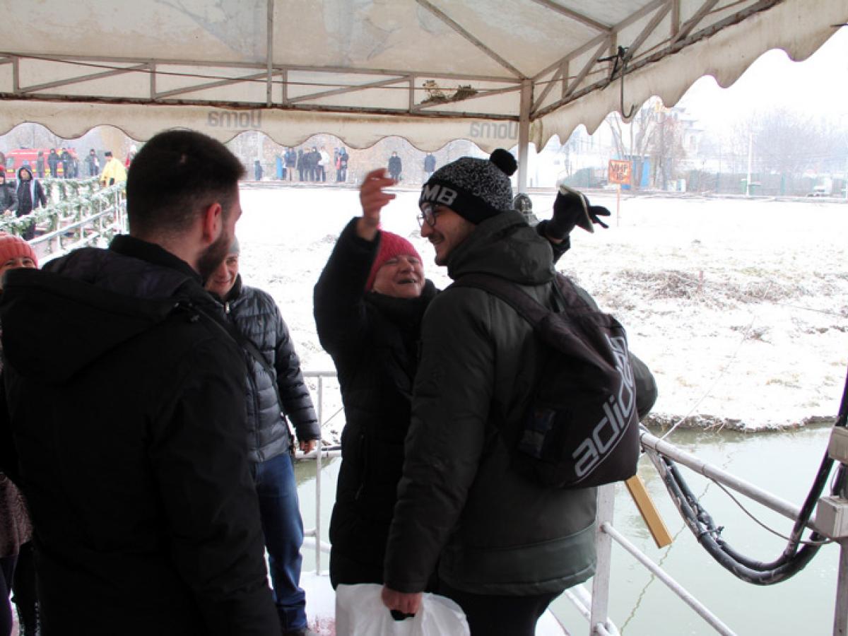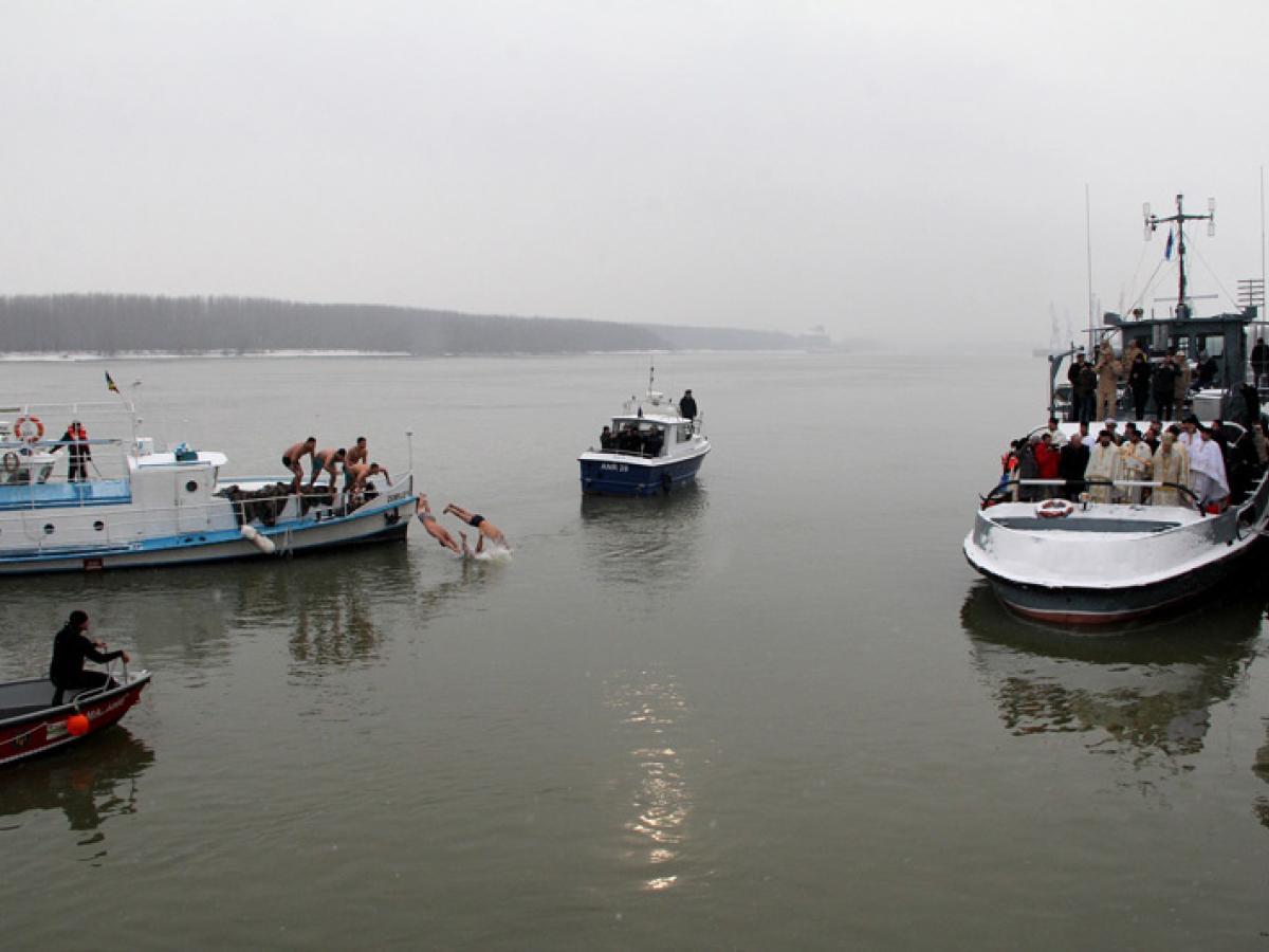 După sfinţirea apei şi predica prin care ÎPS Casian Crăciun le-a reamintit credincioşilor importanţa sărbătorii Bobotezei a urmat cursa pentru prinderea crucii din apa rece a Dunării, tradiţionala competiţie la care, anul acesta, au participat şapte concurenţi. Aceştia au sărit, ca de obicei, de pe şalupa Zorile, iar întrecerea a fost viu disputată, toţi tinerii care au avut curaj să intre în apa rece încercând din răsputeri să ajungă primii la cruce. S-a înotat cu îndârjire, însă norocul i-a surâs de data asta lui Luca Dimitrie Buricea, un tânăr de 19 ani care a participat pentru prima dată la această probă a curajului. Puternic încurajat de mama sa, care i-a făcut “galerie” pe tot parcursul cursei, Luca Buricea a reuşit să se desprindă de pluton şi să pună primul mâna pe cruce.