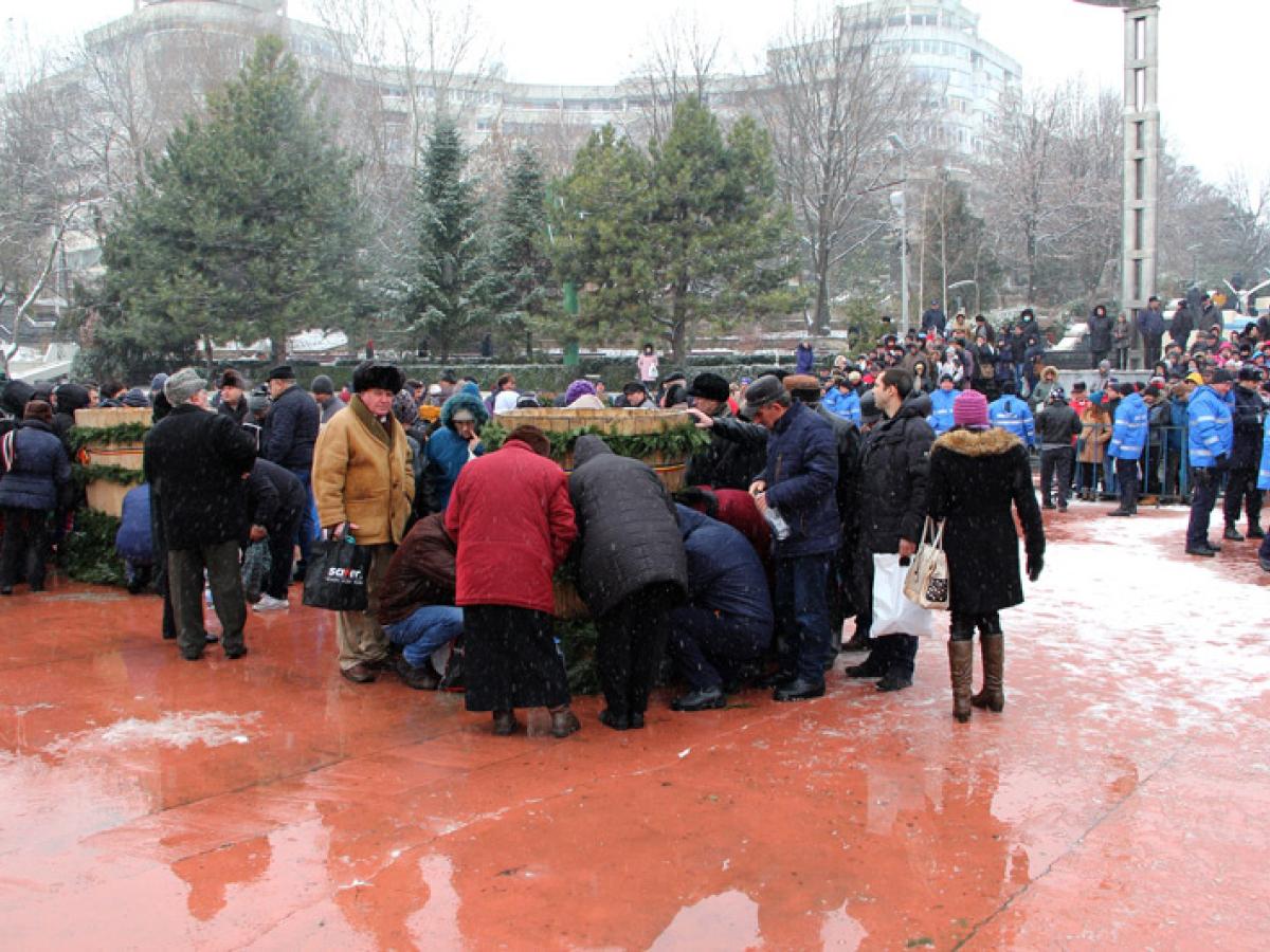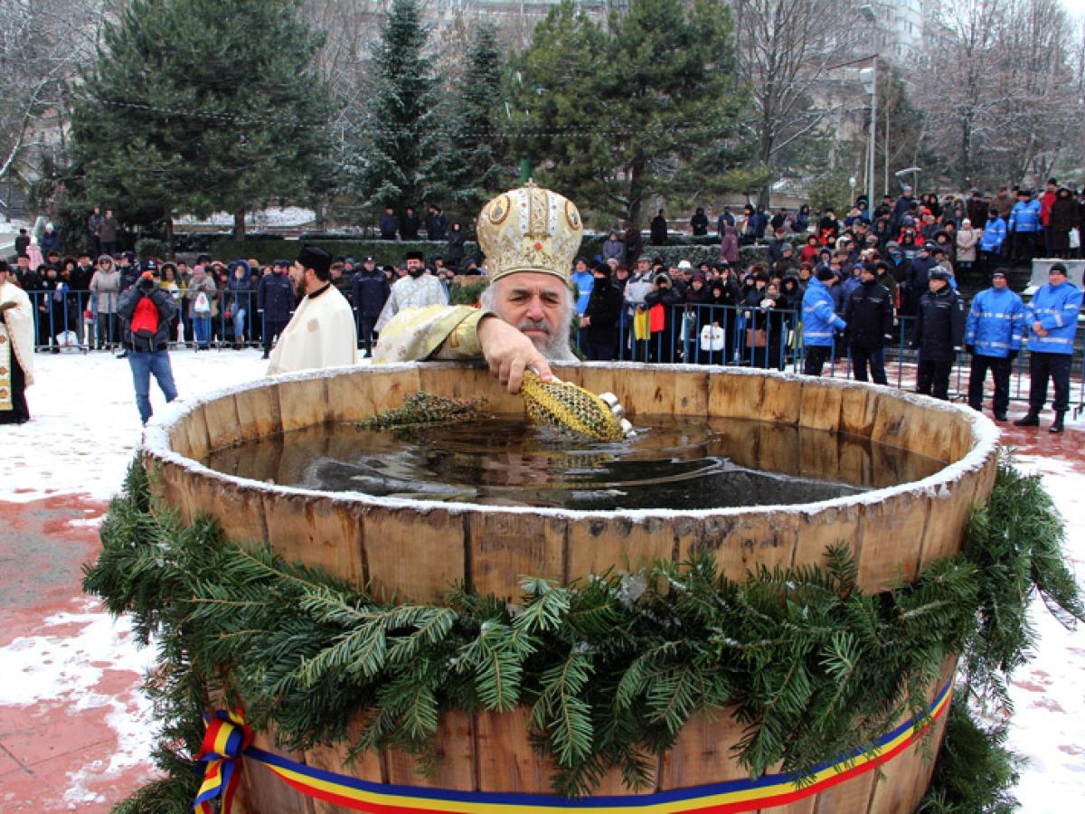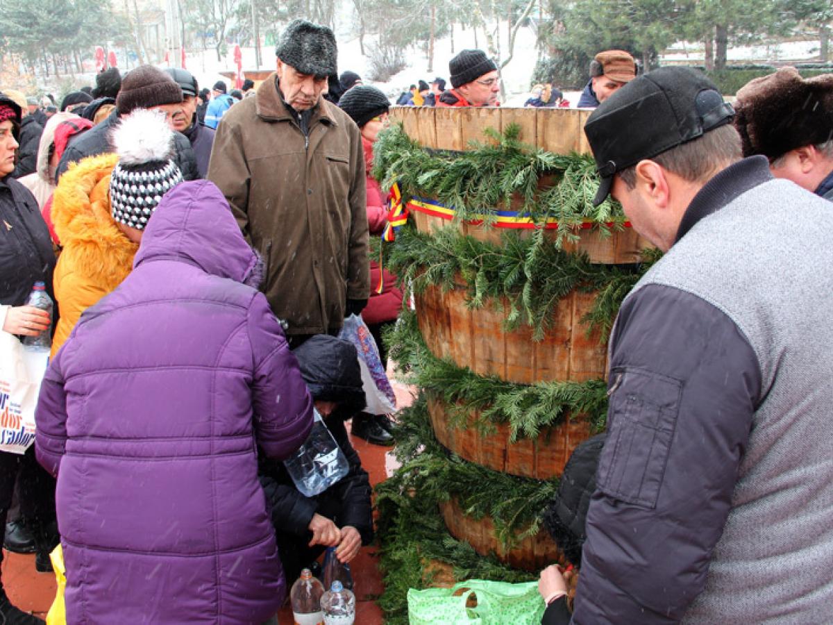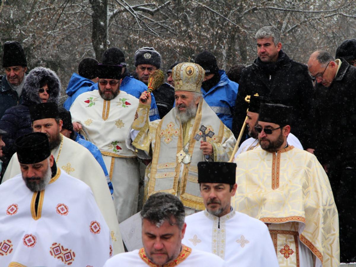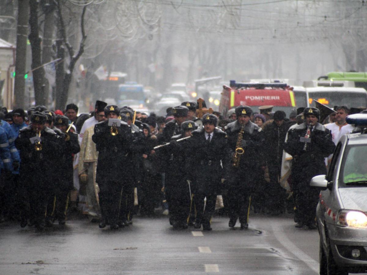 Desfăşurată sub puzderia de fulgi de zăpadă cernuţi de norii grei, ceremonia de Bobotează de anul acesta a avut un pic din farmecul sărbătorilor de pe vremea iernilor adevărate. Ce-i drept, tradiţionalul ger al Bobotezei nu prea s-a făcut simţit chiar ca pe vremuri, dar nici nu se poate spune că am avut temperaturi de primăvară, cum s-a întâmplat anul trecut. Între orele 11.00 şi 12.00, când s-a desfăşurat ceremonia propriu-zisă de pe Esplanada Dunării, temperatura s-a situat la limita pragului de îngheţ, aşa încât nu a fost nici foarte frig, dar nici prea cald. Sub aceste auspicii, programul de Bobotează s-a desfăşurat ca de obicei la Brăila, debutând cu slujba de la ora 8.00 de la Catedrală, oficiată de ÎPS Casian Crăciun, arhiepiscopul Dunării de Jos, în fruntea unui sobor de preoţi. După finalizarea slujbei, în jurul orei 10.45, credincioşii au pornit în procesiune, de la Bariera Călăraşilor până la scena de pe Esplanadă, acolo unde fuseseră pregătite mai multe budane mari de lemn, pline cu apă ce aştepta să fie sfinţită. Pe tot traseul, procesiunea a fost deschisă de fanfara Garnizoanei Brăila.