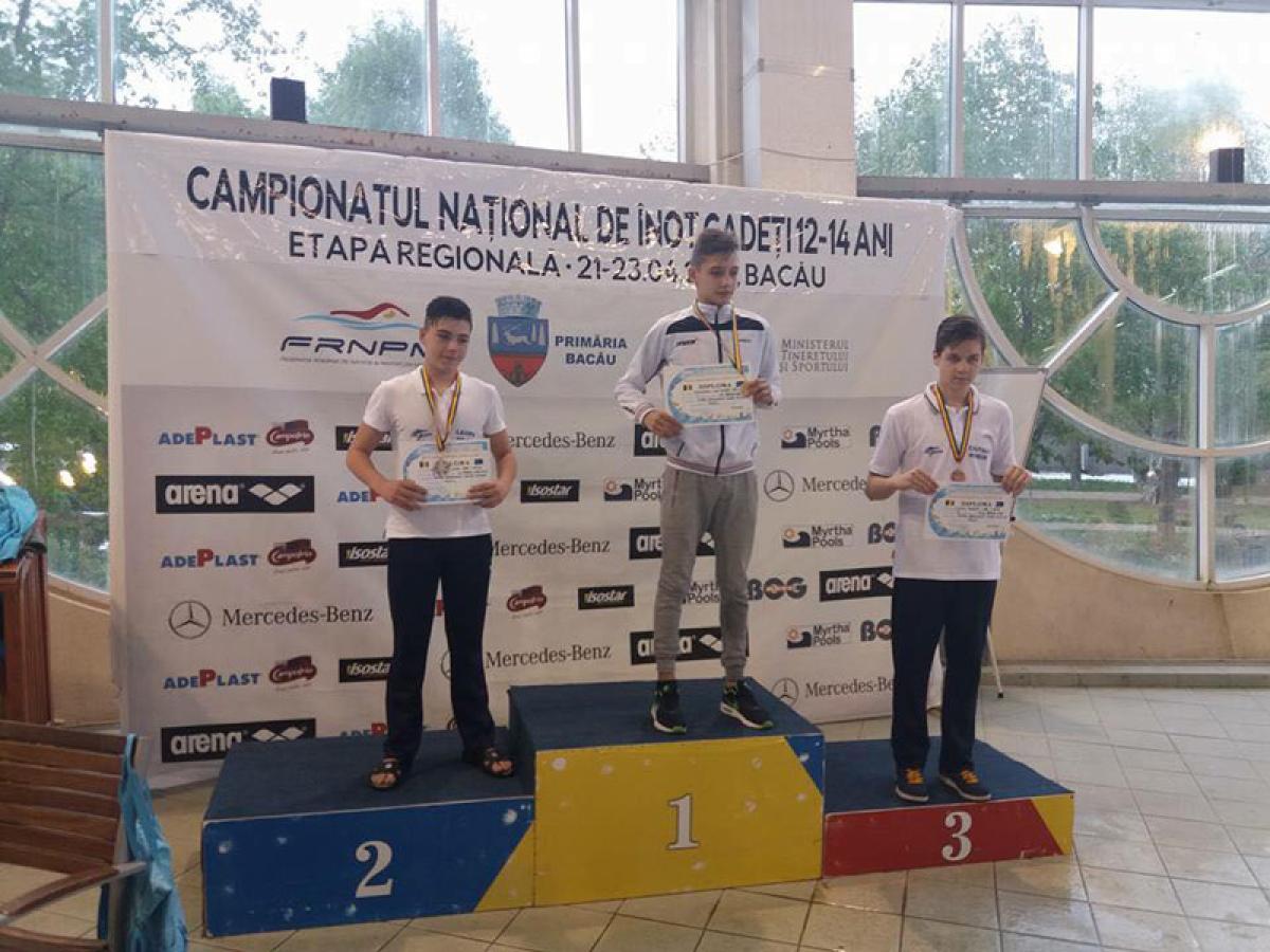 Denis Leopa a sosit pe locul al dolea în proba de 100 m fluture, el fiind secondat de Robert Ciutacu şi tot pe trei s-a clasat, la 100 m bras, Teodora Pânzariu.