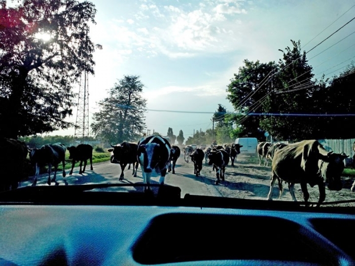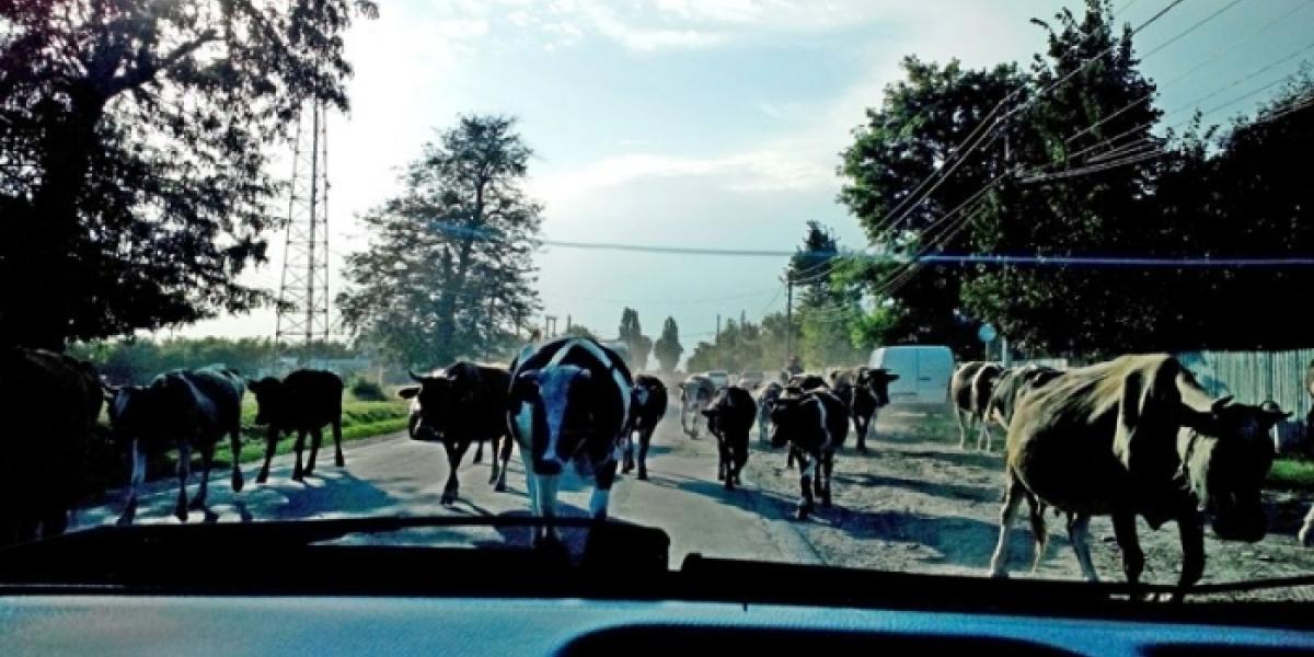 Un şofer a suprins imaginea alăturată duminică, 3 august, pe Drumul Naţional 22 Brăila - Râmnicu Sărat, în localitatea brăileană Gradiştea. Brăilean de origine, şoferul respectiv s-a mutat de cinci ani într-o localitate din Ardeal, iar zilele trecute şi-a vizitat fostul oraş. Acesta spune cu dezamăgire că, cel puţin în ceea ce priveşte mentalitatea şi gradul de civilizaţie al oamenilor, Brăila a rămas mult în urma altor oraşe. "Şi în Ardeal sunt multe chestii care nu merg bine, drumuri rele, cerşetori, ţigani, pomanagii etc... Dar o asemenea «avalanşă» de vaci pe şosea încă n-am văzut... De fapt, şi şoseaua respectivă, la starea în care se află ar trebui numită drum comunal sau judeţean, în niciun caz naţional, cum figurează în prezent. Dar unde nu-i drum, avem vaci pe şosea, iar în comuna Tudor Vladimirescu avem băncuţe montate la fiecare poartă, din bani publici presupun, ca să aibă pe ce sparge seminţe localnicii. Trist, dar diferenţele dintre oamenii din Ardeal/Banat, pe de o parte şi cei de aici, din Moldova şi din Oltenia, pe de altă parte, se văd cu ochiul liber", spune cititorul Viorel D., într-un e-mail adresat redacţiei "Obiectiv - Vocea Brăilei".