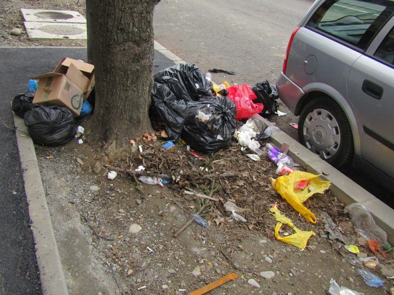 Între chioșcurile de la liceul ”Murgoci”, alt exemplu de nesimțire, iar pe strada Bateriei așteptau să fie ridicați mai mulți saci RER plini cu pământ, resturi vegetale, pietriș și diverse gunoaie. Revoltat și înjurând, un locuitor de aici ne-a declarat, vineri, 3 martie, că “sacii stau neridicați de trei zile. De ce să mai plătim o taxă foarte mare pentru gunoaie?!”.