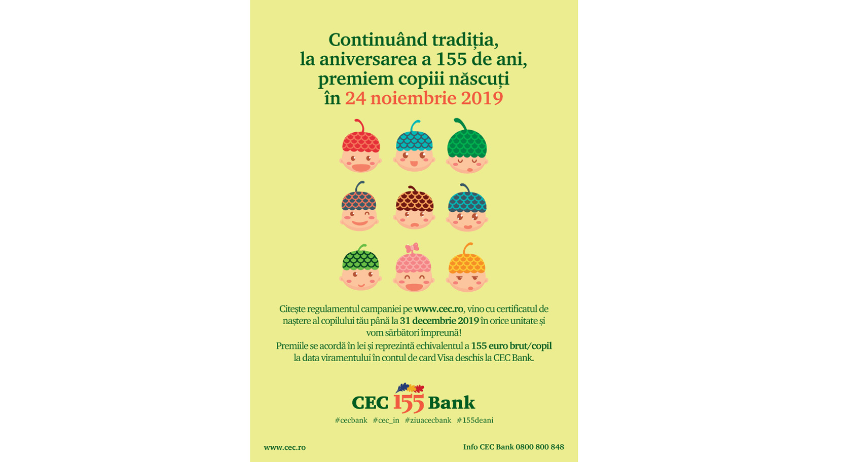 In 2019, ne dorim sa continuam traditia economisirii. Si fiindca implinim 155 de ani, am lansat o campanie dedicata copiilor nascuti in 24 noiembrie 2019, de ziua bancii.