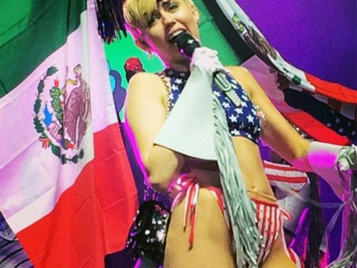 Deputatul local Francisco Trevino Cabello, de la partidul de guvernământ, a propus Congresului aprobarea unei amenzi aplicate artistei care a susţinut marţi un concert la Monterrey (capitala statului Nuevo Leon). În timpul show-ului, una din balerinele de pe scenă a lovit-o peste fund pe cântăreaţă cu steagul Mexicului. Legislativul local a cerut sancţionarea lui Miley Cyrus cu o amendă în valoare de 16.000 de pesos (1.214 de dolari).