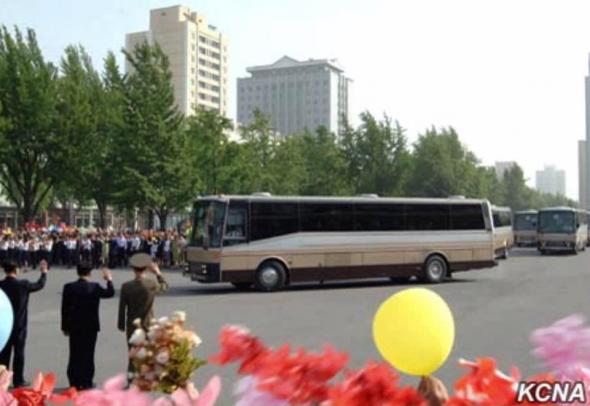 Potrivit agenției de presă nord-coreene KCNA, mii de oameni au ieșit în stradă în costume tradiționale și haine colorate, pentru a sărbători reîntoarcerea oamenilor de știință care au creat racheta și au testat-o weekendul trecut.