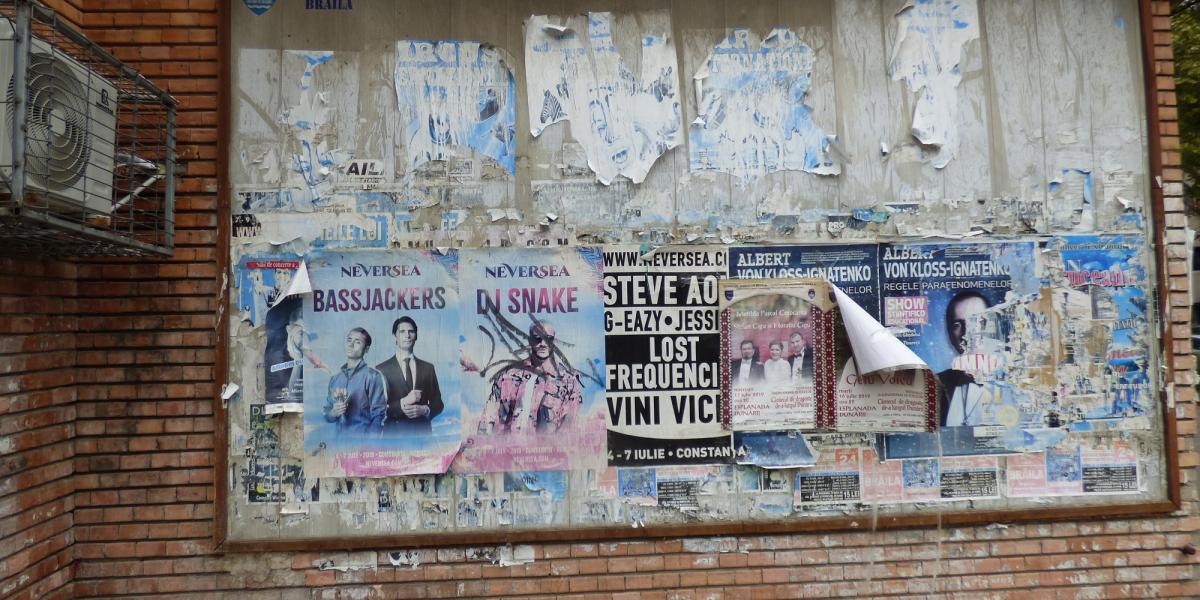 • multe dintre panourile existente sunt ruginite, neîngrijite şi pline de afişe rupte de vânt şi atârnând total inestetic • e un mare pas înapoi faţă de afişajul stradal de acum 50 de ani, care era incomparabil mai bine gândit şi întreţinut