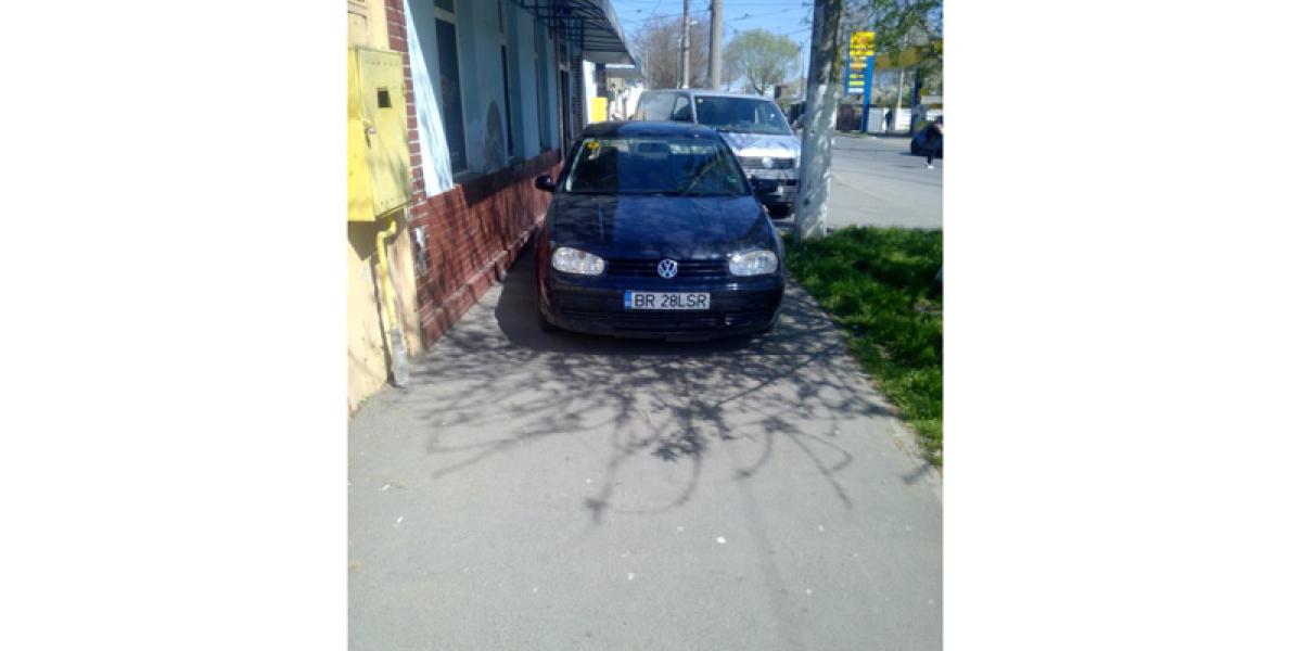 O altă cititoare ne-a trimis un exemplu concret din cartierul Brăiliţa, unde posesorul unui autoturism Volkswagen şi-ar fi făcut un obicei din a obtura complet trotuarul unei străzi, în deplin dispreţ faţă de pietoni. Cititoarea noastră ne-a trimis o fotografie relevantă, pe care a descris-o astfel: “În imagine aveţi un astfel de specimen (de şofer n.n.) care, în intervalul 8.00 - 16.00, ocupă în întregime acest trotuar din cartierul Brăiliţa, exact în staţia de autobuz Spălătorie, lângă fabrica de confecţii apărută peste noapte. Acela nu se mai numeşte trotuar pentru pietoni ci pentru maşini...”, ne-a scris cititoarea E.T., care şi-a manifestat speranţa că autorităţile locale vor interveni pentru eliberarea trotuarului de “tupeul şi aroganţa” respectivului şofer.