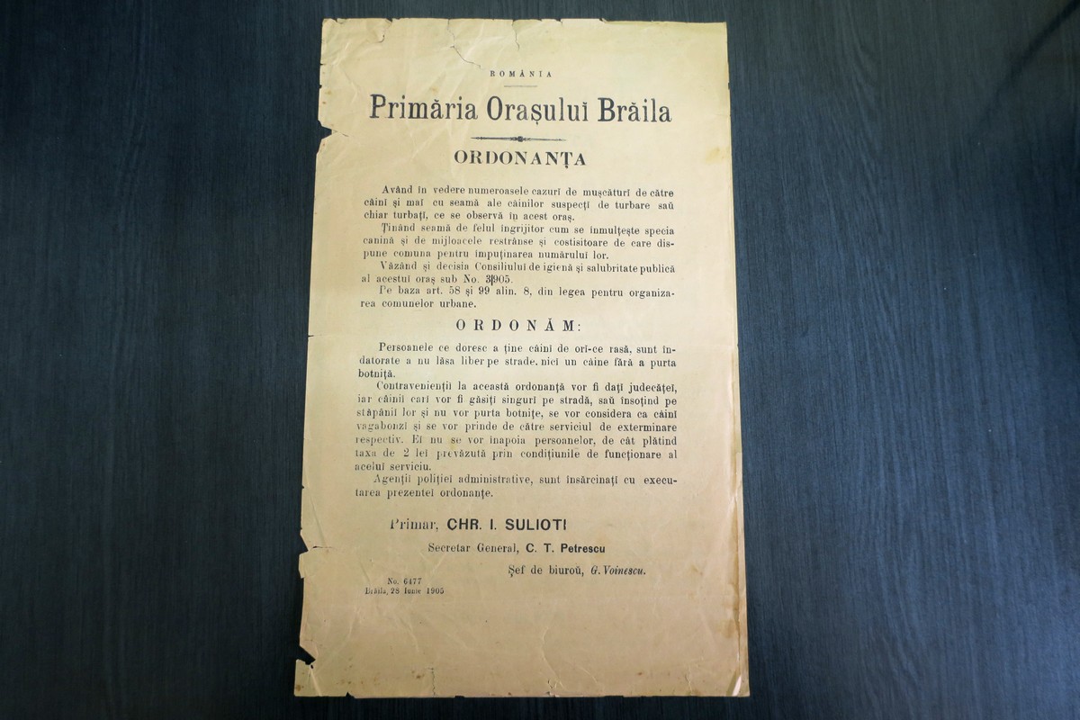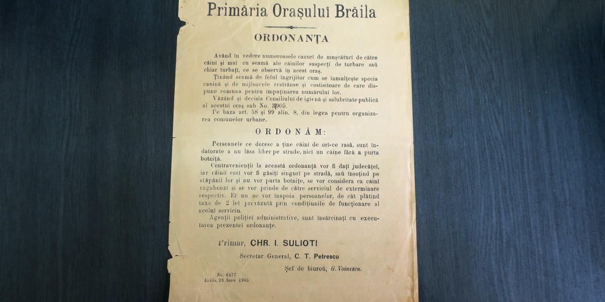 “Din timpii cei mai depărtaţi, distrugerea cadavrelor a preocupat toate popoarele. Se ştie cât de vătămător este sănătăţii publice lăsarea cadavrelor sub cerul liber. Ele infectează aerul de respirat şi suprafaţa pământului, pe unde pasc vitele sau se cultivă plantele de tot soiul şi pe care le consumă omul în stare crudă, cum ar fi salatele (…) Tot astfel, întâlnim pe marginile şoselelor, de multe ori, tot felul de stârvuri, provenind de la animale care au murit de cele mai virulente boli, cum ar fi dalacul şi, mai târziu, tot pe acel loc, vedem păscând vitele celui dintâi venit căruţaş, care a dejugat, pentru a se odihni de povara sa”, se precizează în Ordonanţa Primăriei Oraşului Brăila din 31 martie 1905, semnată de Christodul I. Suliotis, primul gospodar al urbei.