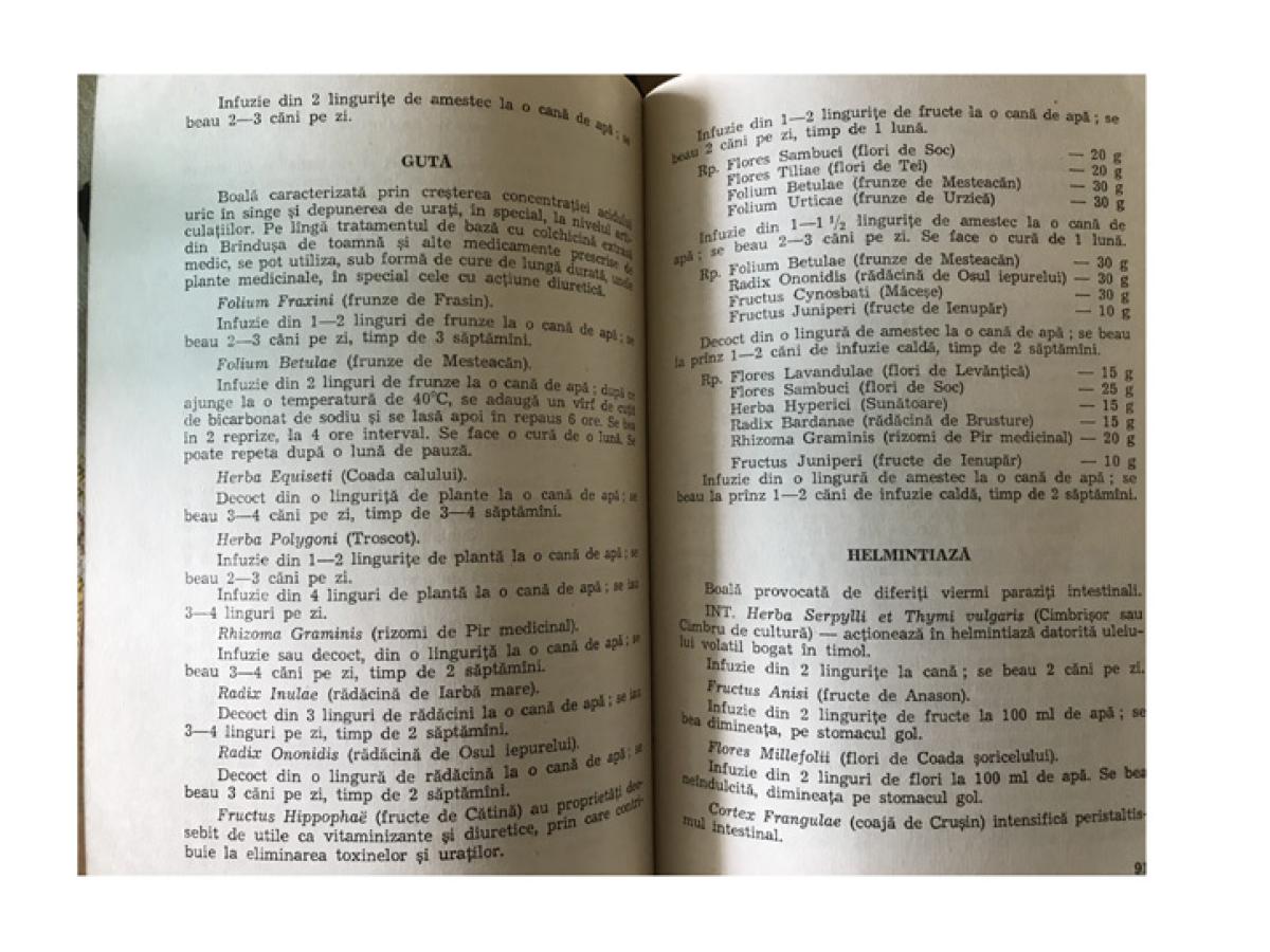 -Genţiana Lutea L. (ghinţura) - contra febrei. Se foloseşte ca decoct, cu o linguriţă de plantă mărunţită la 500ml de apă rece. Se fierbe 15 minute şi se bea fracţional în trei reprize, înaintea meselor.
