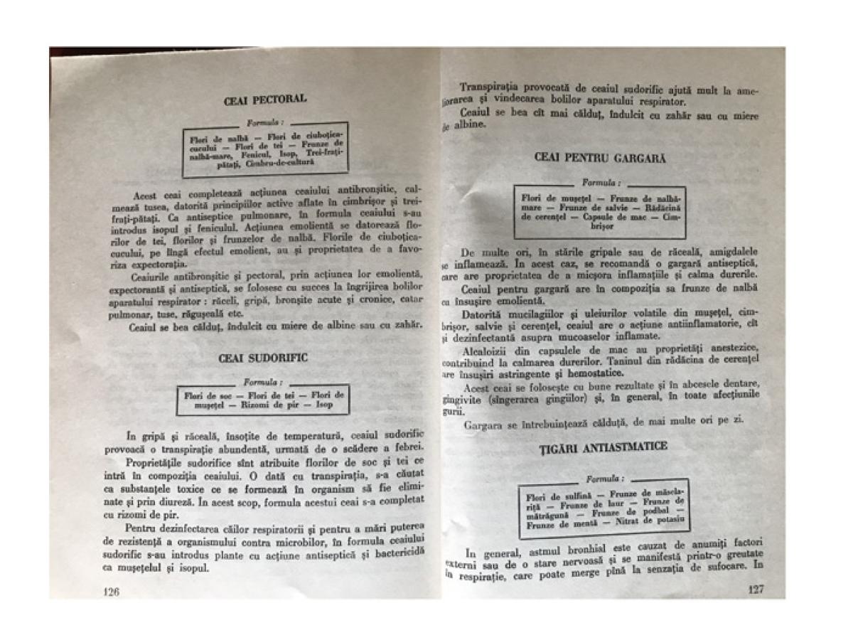 O dovadă a preocupării statului nostru pentru sănătatea populaţiei este şi dezvoltarea sectorului de plante medicinale. Plantele medicinale sunt astăzi valorificate în mod ştiinţific prin unităţile cooperaţiei de consum. În prezent se recoltează peste 200 de specii de plante medicinale din flora spontană şi se cultivă 28 de plante medicinale şi aromatice.”