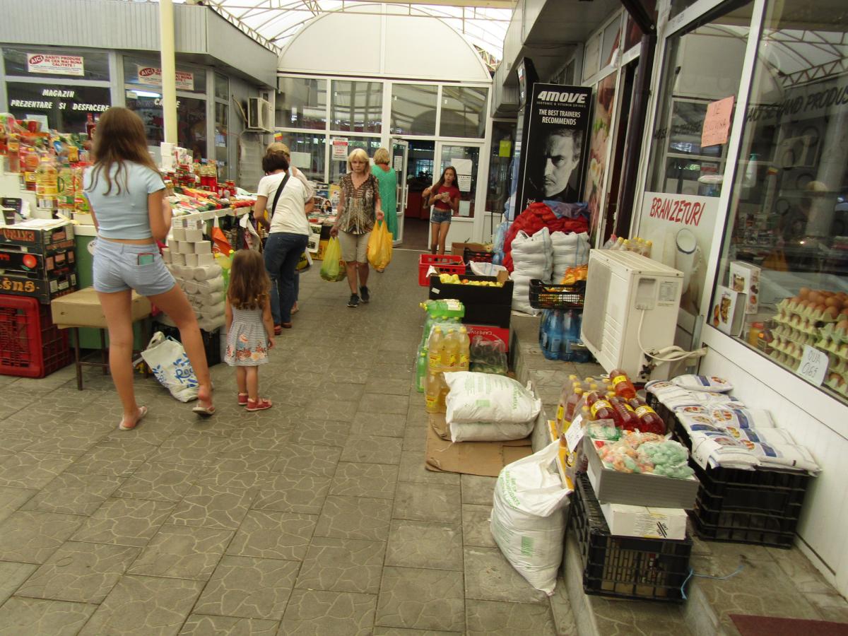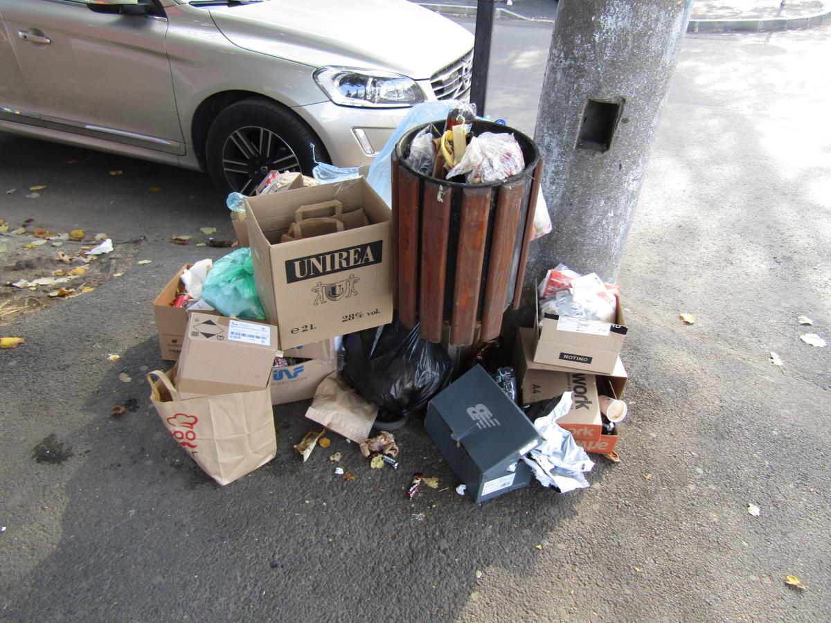 Deranjează apoi, foarte mult, și este inadmisibil ca diverși comercianți (nu de la tarabe) să arunce zilnic la bordură diverse ambalaje, resturi alimentare și chiar gunoiul pentru care nu știm dacă există contract cu firmele de salubritate. De altfel, respectivele firme nu ridică timp îndelungat (chiar și 4-5 zile) ce se aruncă peste și lângă coșurile de gunoi. În neregulă este și faptul că după demolarea magazinelor dinspre Direcția de Protecție a Copiilor, locul a rămas pustiu, plin de pavimente sparte, garduri rupte sau cutii pentru gaze mutilate. A se vedea că sunt și unități comerciale fără firmă, trotuare ocupate în exces de diverse chioșcuri, jardiniere distruse etc. Şi culmea, în vreme ce multe tarabe stau nefolosite, se practică expunerea legumelor și fructelor pe jos, la nivel cu pavimentul. Este stânjenită astfel circulația cumpărătorilor și există riscul depunerii de praf (dar nu numai) pe produsele amintite. Pentru care este necesar un stelaj. Dar, probabil, nu se percepe taxă decât pe tarabă, nu și pe locul ocupat în jurul acesteia…