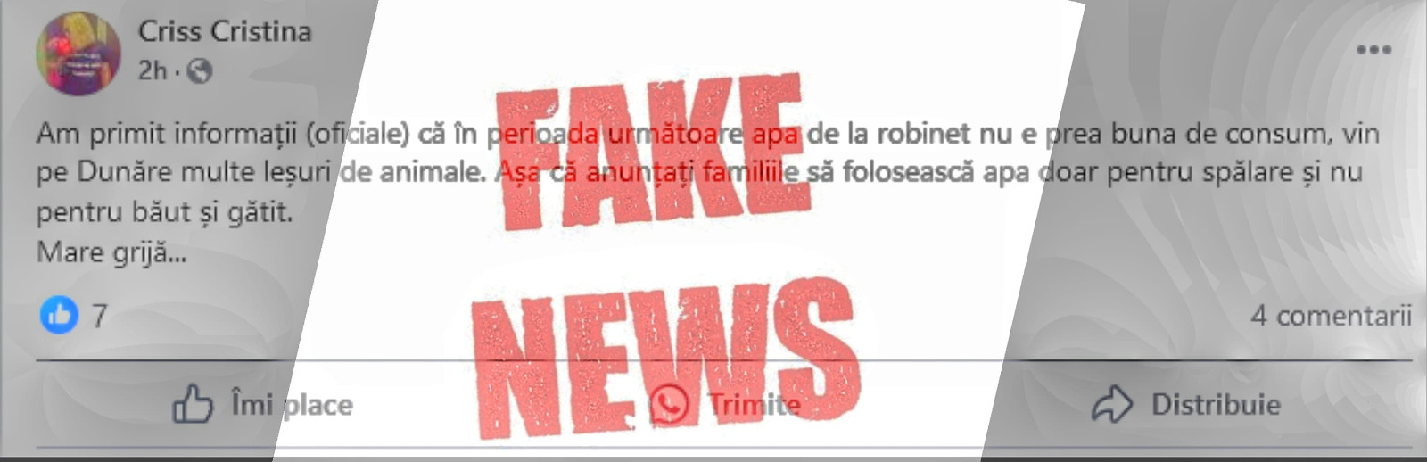 * asta după ce, precizează reprezentanții companiei, ar fi apărut în mediul online informații FAKE NEWS distribuite prin conturi false potrivit cărora „apa de la robinet nu e prea bună de consum, vin pe Dunăre multe leșuri de animale”