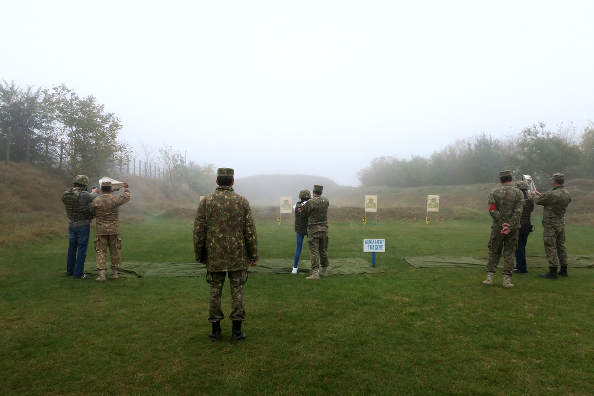 Din pricina ceţei care a acoperit, ieri, poligonul de la “Vulpea”, tragerea s-a efectuat, din păcate, numai cu pistolul TT, la ţinta-piept aşezată la distanţa de 25 de metri, renunţându-se la tragerea cu pistolul mitralieră Kalashnikov calibru 7,62 mm (la ţinta amplasată la o distanţă de 100 de metri). Chiar şi aşa, ţintele au dat mari bătăi de cap jurnaliştilor prezenţi, obişnuiţi mai degrabă cu tastatura, decât cu trăgaciul armei letale, care mai avea şi recul.