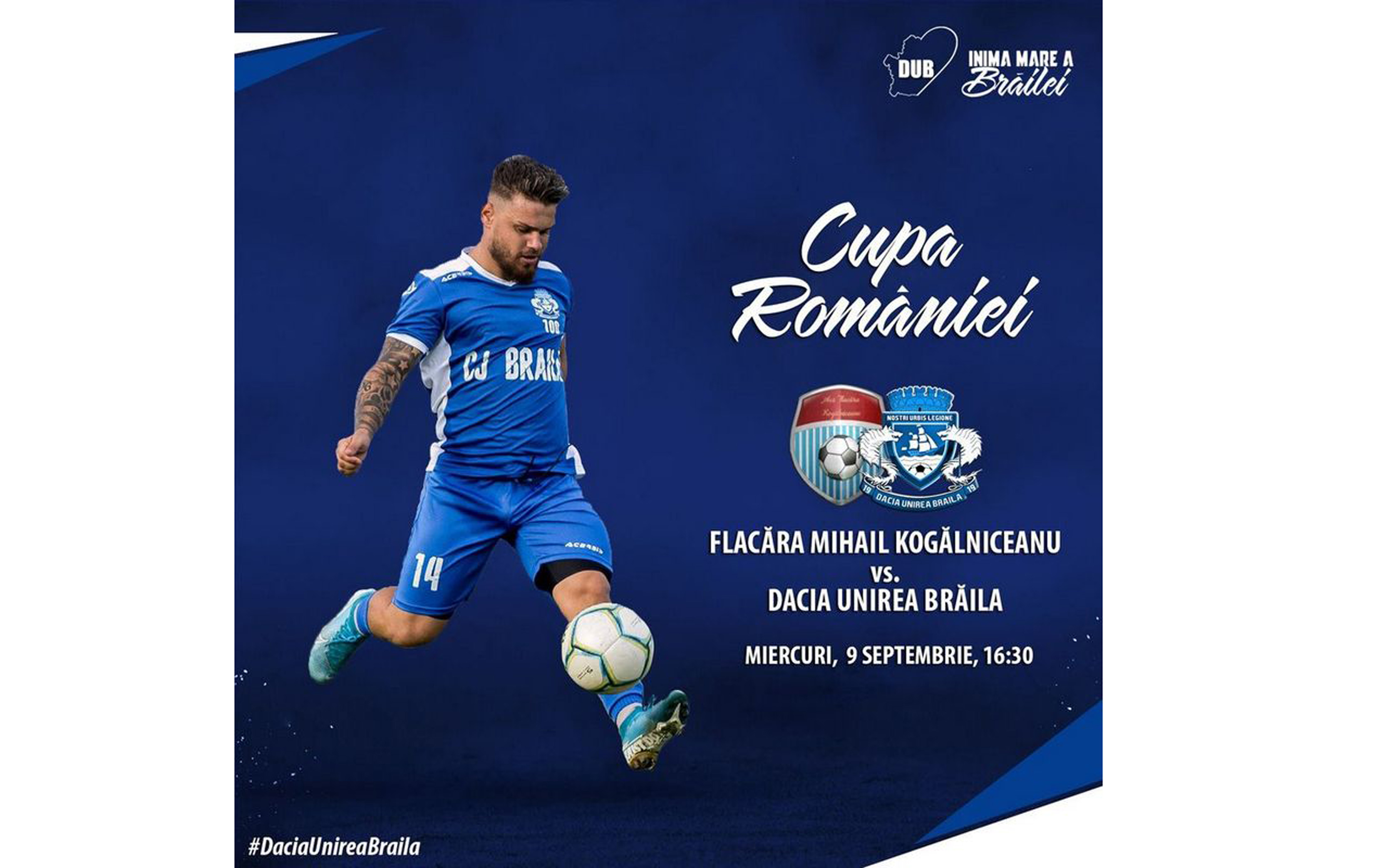 Dacia Unirea va evolua în deplasare, la Flacăra Mihail Kogălniceanu, formaţie din Liga a IV-a a judeţului Tulcea, iar Victoria Traian, echipa desemnată de AJF Brăila să participe în Cupa României, faza naţională, este programată să joace pe teren propriu cu CS Făurei.