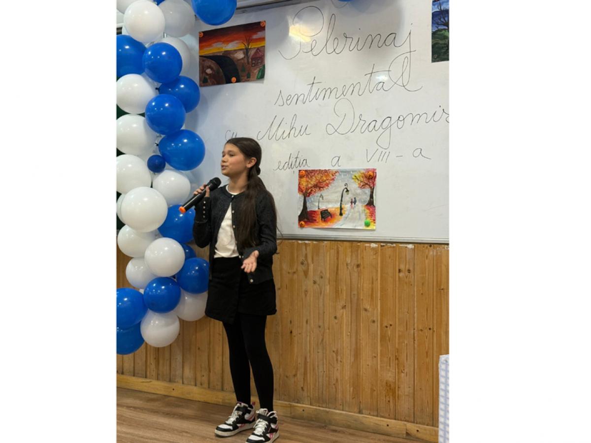 Vineri, 7 noiembrie 2025, în preajma zilei patronilor spirituali, Școala Gimnazială ”Mihu Dragomir” din Brăila a îmbrăcat haine de sărbătoare, marcând tradiționalul eveniment cultural ”Pelerinaj sentimental cu Mihu Dragomir”, ajuns anul acesta la ediția a VIII-a. Proiectul județean, devenit deja o veritabilă manifestare de suflet pentru elevi și profesori, a reunit pasiunea pentru poezie, traducere, pictură și reflecție educațională într-un cadru care a omagiat personalitatea poetului Mihu Dragomir – patronul spiritual al școlii. Evenimentul a cuprins patru secțiuni distincte: recitare, traduceri în limba engleză și franceză, pictură inspirată de lirica poetului brăilean, precum și un simpozion dedicat cadrelor didactice, cu tema <Abordări transdisciplinare ale materiei predate. Exemple de bune practici>. A fost prezenți 83 de elevi din 27 de școli din municipiul și județul Brăila și 26 de cadre didactice, demonstrând interesul constant al comunității educaționale pentru cultivarea valorilor literare și artistice locale.