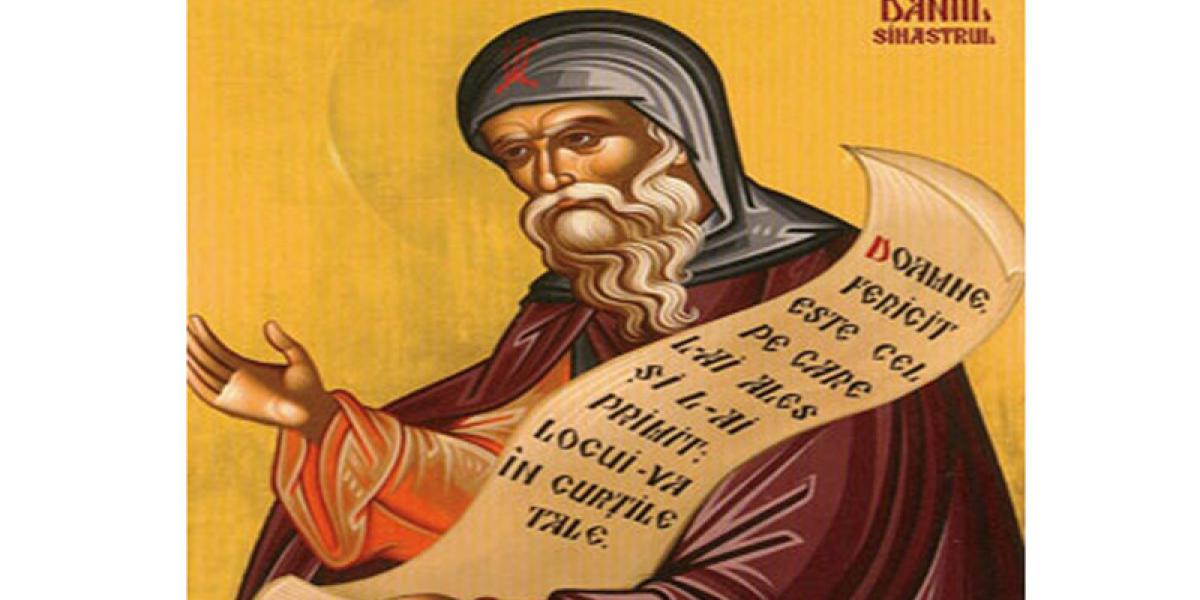 Sfantul Daniil Sihastrul este cunoscut si sub numele de "Daniil Schimonahul" sau "Daniil cel Nou", nume care nu mai fac posibila confuzia cu prorocul din Vechiul Testament. S-a nascut la inceputul secolului al XV-lea, intr-un sat din apropierea orasului Radauti. Ajunge la Schitul Sfantul Lavrentie, la 6 km de Putna, locul intrarii sale in monahism. Din botez s-a numit Dumitru, iar prin calugarie s-a numit David. Dupa ce primeste marea schima, ia numele Daniil.