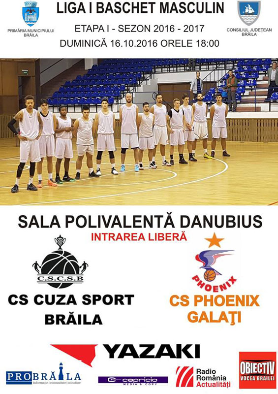 • baschetbaliştii seniori brăileni joacă duminică în Sala Polivalentă cu Phoenix 2 Galaţi • meciul începe la ora 18.00, iar intrarea este liberă • în weekend se dă startul şi în competiţia naţională a juniorilor