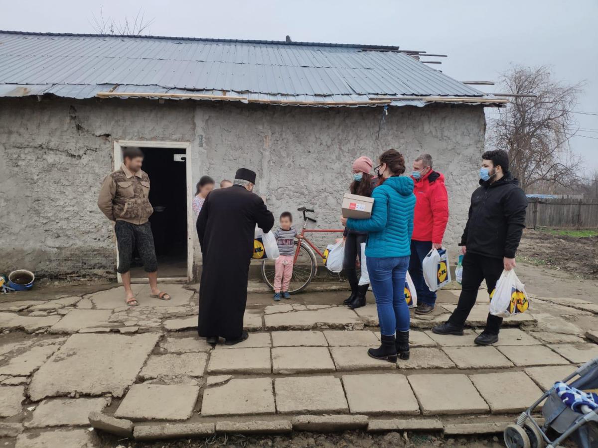 * în urma donațiilor strânse, mai multe familii din comuna Berteștii de Jos au primit, duminică, pachete cu alimente și dulciuri