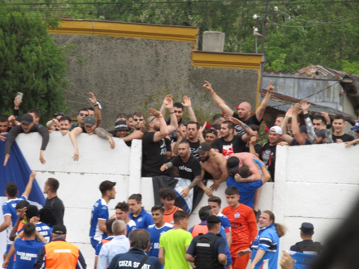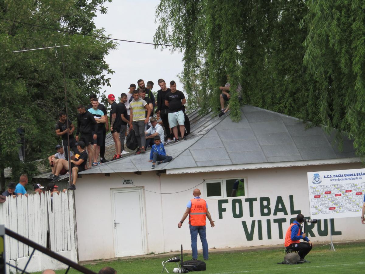 În afară de galeria care a avut acces în tribuna stadionului din Însurăței, fanii cei mai înfocați ai Daciei Unirea au găsit soluții originale ca să poată urmări finala de promovare în Liga a II-a. Cei de pe combină au avut, ca de obicei, locurile rezervate, însă și pe acoperișul unei case au luat loc câțiva spectatori. De asemenea, la mijlocul primei reprize, în jur de 20 de tineri s-au urcat pe acoperișul cabinelor stadionului din Însurăței și, dacă nu ieșeau în evidență prin anumite scandări, probabil că ar fi putut urmări tot meciul. La pauză, acestora li s-a impus de către forțele de ordine să coboare de pe acoperiș. Spectatorii s-au mutat în apropiere și au urmărit partida cocoțați pe diverse obiecte.