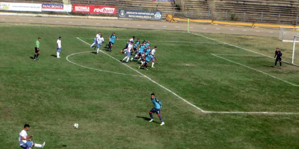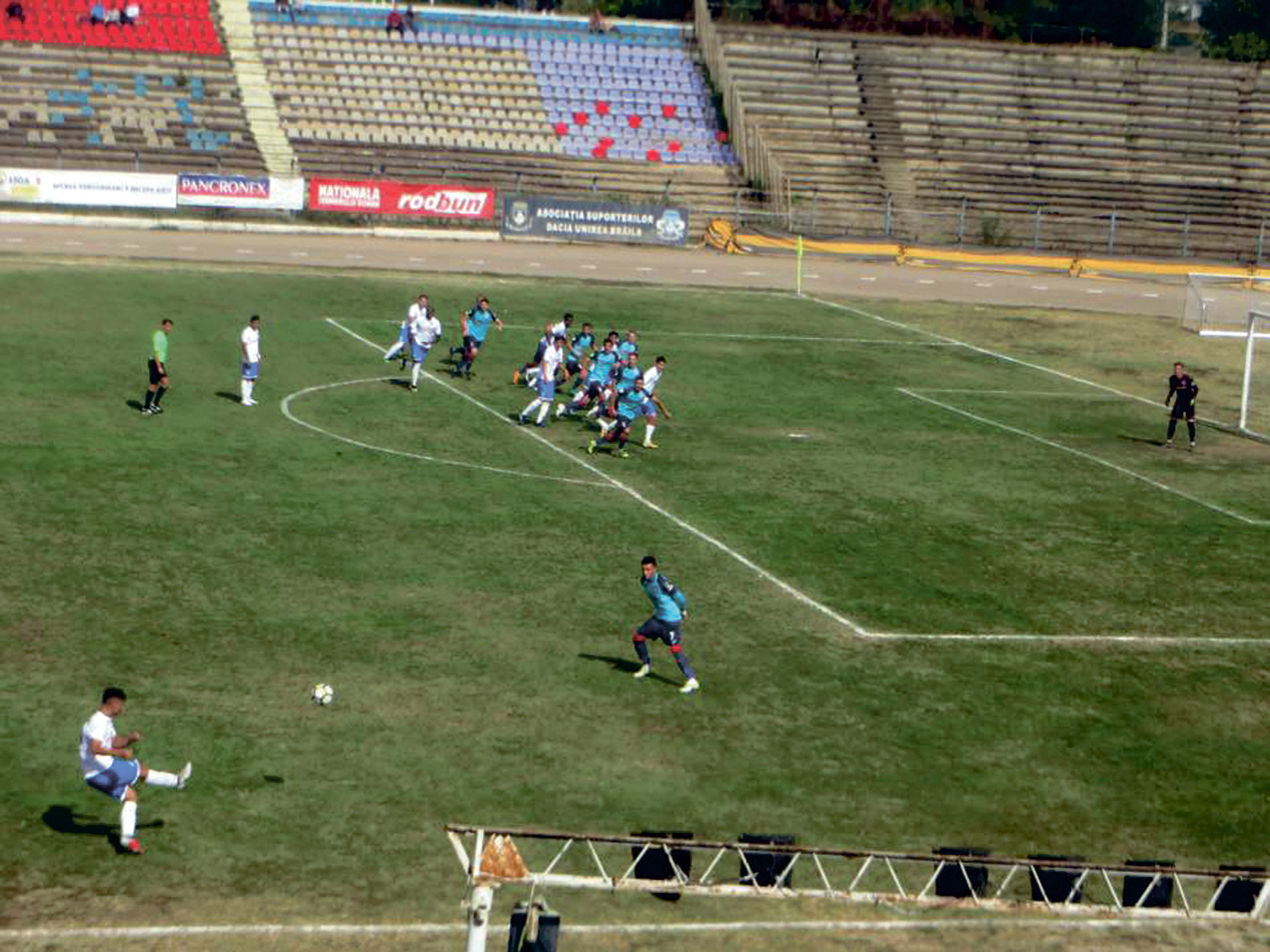 În minutul 40 Şerban a trimis mingea spre poartă, dar Avram a deviat-o în corner. Lovitura de colţ a fost foarte bine executată de Mihai, direct pe poartă, însă din nou portarul gazdelor a fost la post. La ultima fază Avram a avut o dublă intervenţie la şuturile consecutive ale lui Mihai şi Şeban, iar după primele 45 de minute, graţie intervenţiilor portarului formaţiei brăilene, scorul a fost egal, 0-0.
