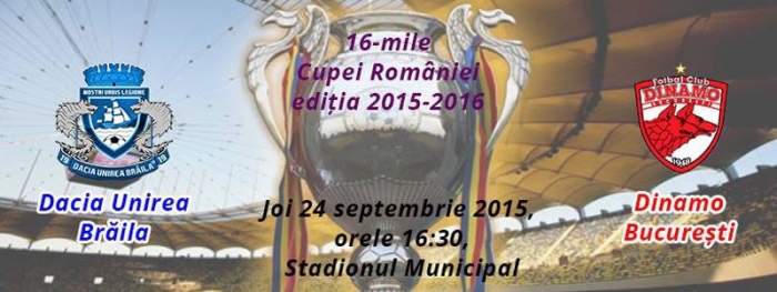 Au mai rămas două zile până la cel mai important eveniment fotbalistic din Brăila în 2015, meciul din şaisprezecimile Cupei României la fotbal dintre Dacia Unirea şi Dinamo Bucureşti. Iar iubitorii sportului rege din oraşul nostru sunt aşteptaţi în număr cât mai mare la acest eveniment deosebit, spectatorii putând purta formaţia pregătită de Alin Pânzaru spre un succes de palmares. După 11 ani, cele două formaţii se întâlnesc din nou în această competiţie, de data aceasta într-un singur meci, unul eliminatoriu.