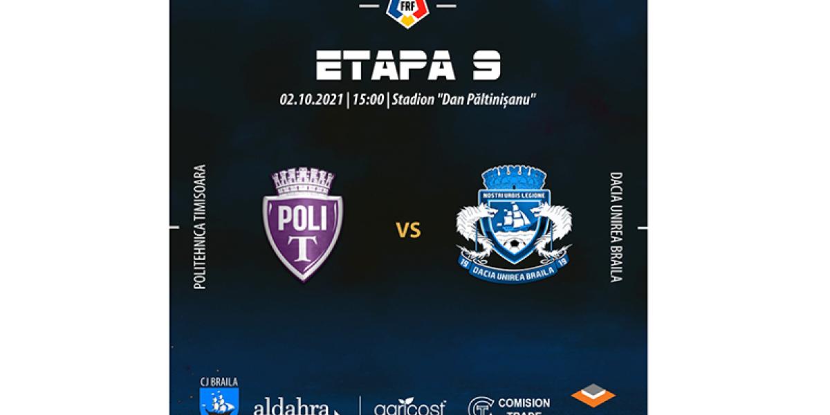 02 octombrie, ora 15.00: Politehnica Timișoara - Dacia Unirea Brăila