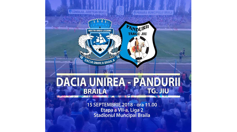 După succesul de miercuri din Cupa României, Dacia Unirea, locul al 18-lea în clasamentul Ligii a II-a, revine astăzi în faţa propriilor spectatori, într-o partidă cu Pandurii Tg. Jiu, formaţie aflată pe poziţia a 8-a.