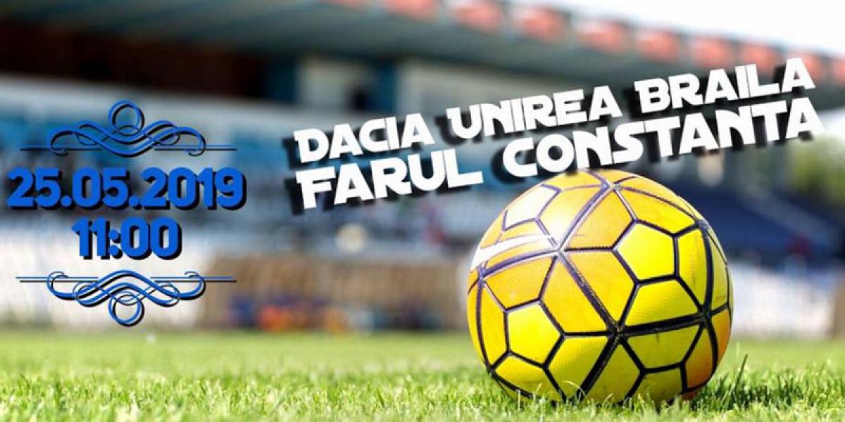 Sâmbătă, 25 mai, Dacia Unirea va juca pentru ultima oară în acest campionat pe teren propriu, adversara echipei brăilene fiind SSC Farul Constanţa. Meciul nu are niciun fel de miză ci este doar unul de palmares. Aflată pe ultimul loc în Liga a II-a, Dacia Unirea este deja retrogradată, iar constănţenii au asigurată menţinerea în acest eşalon pentru că înaintea acestei runde ocupă locul al 14-lea, cu 43 de puncte. Cu menţiunea că, în ultima rundă, SSC Farul va evolua pe teren propriu în compania echipei Ripensia Timişoara.