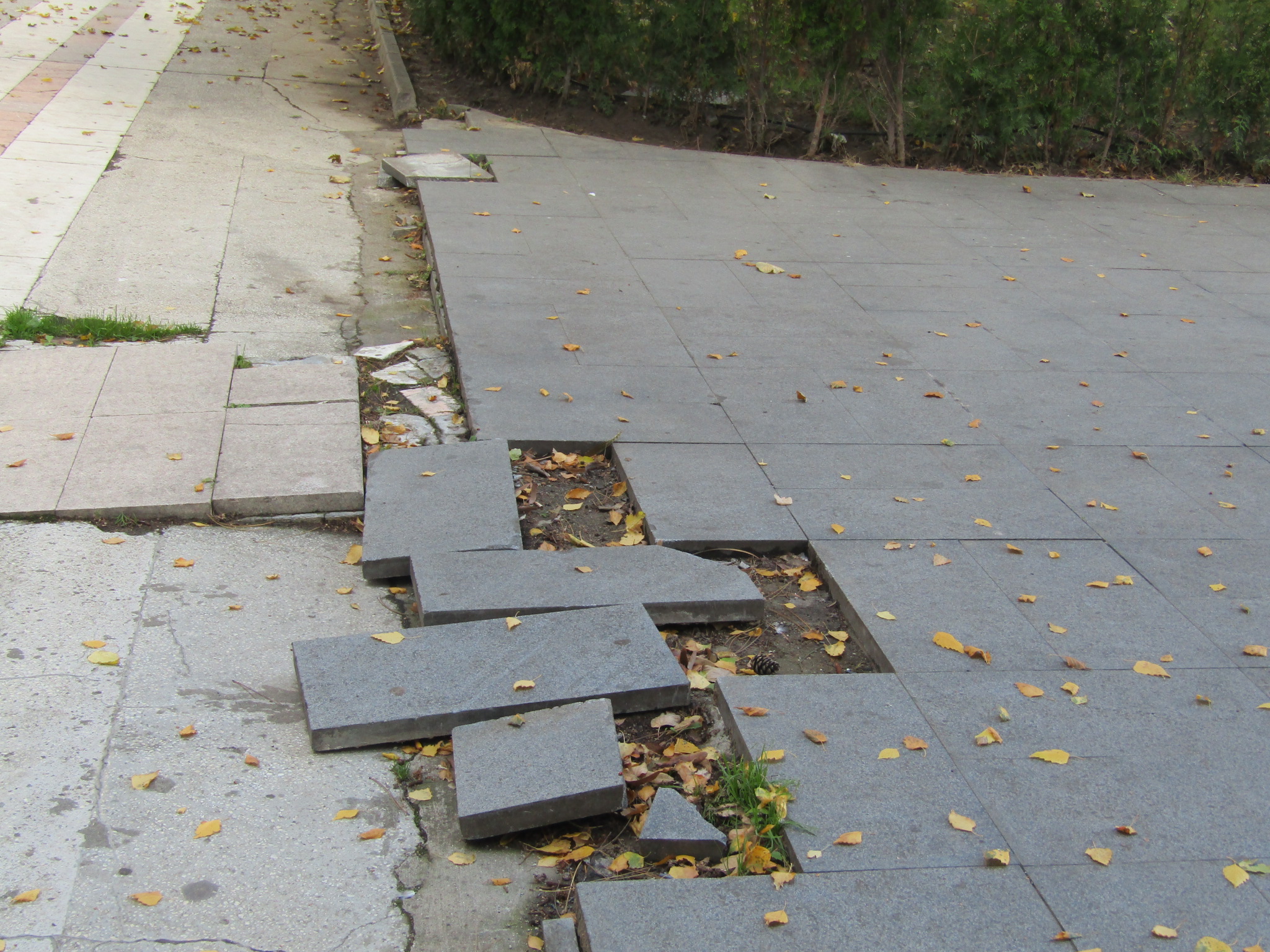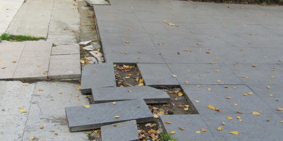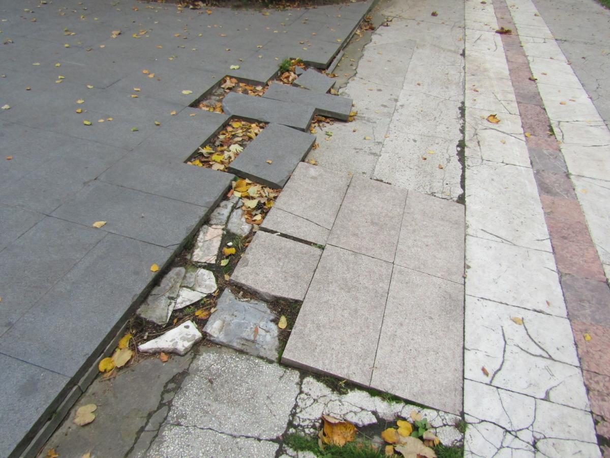 • utilajele care au intervenit pentru toaletarea unor copaci au intrat în zonă fără a se lua minime măsuri pentru protecția pavimentului