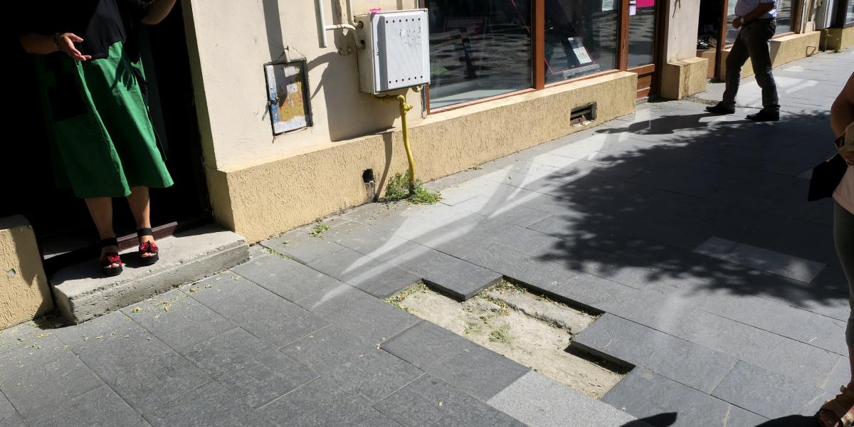 În ultimii 10 ani, de când s-a făcut acea modernizare a străzii Mihai Eminescu (fosta Regală a Brăilei), pe bani europeni, au fost probleme aproape permanent cu dalele de pe trotuar, care se mișcau sub pașii trecătorilor pentru că nu au fost bine fixate,infiltrațiile apelor pluviale dislocându-le de pe poziție. Au trebuit ani de zile până când autoritățile locale au găsit o soluție pentru fixarea mai bună a respectivelor dale, iar în ultima vreme problema părea rezolvată. Numai că ghinionul pare să se țină scai de acest trotuar al singurei străzi pietonale din Centrul Vechi al Brăilei... De ceva vreme, câteva dale, de pe tronsonul situat între intersecția cu strada Petru Maior și intersecția cu bulevardul Cuza, au dispărut cu totul din peisaj, în locul lor apărând o groapă numai bună să provoace accidente în rândul pietonilor mai puțin atenți. ”O doamnă s-a împiedicat în această spărtură și a căzut efectiv, lovindu-se destul de rău. Sunt deja câteva săptămâni de când au dispărut dalele astea. Au venit de la Primărie, au zis că o să caute să le înlocuiască, dar n-au mai dat niciun semn...”, ne-a spus un vânzător de la un spațiu comercial din zonă.