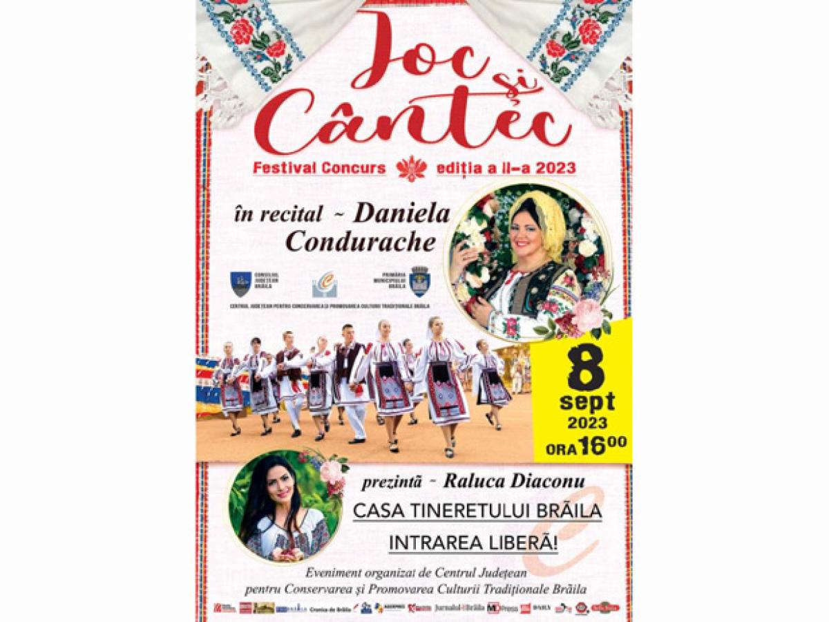 Astfel, Consiliul Județean Brăila, prin Centrul Județean pentru Conservarea și Promovarea Culturii Tradiționale (Centrul de Creație) și Primăria Municipiului Brăila organizează vineri, 8 septembrie, de la ora 16.00, în incinta Casei Tineretului, de pe Calea Călărașilor, cea de a II-a ediție a Festivalului Concurs pentru amatori „Joc și cântec”.