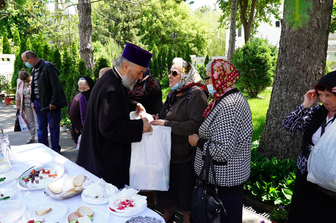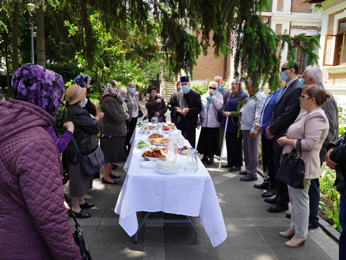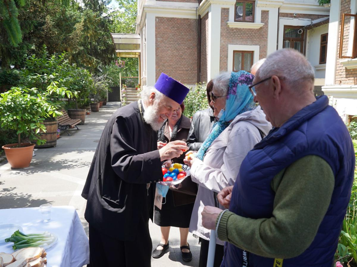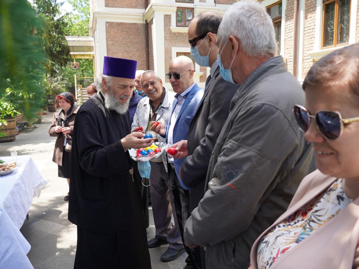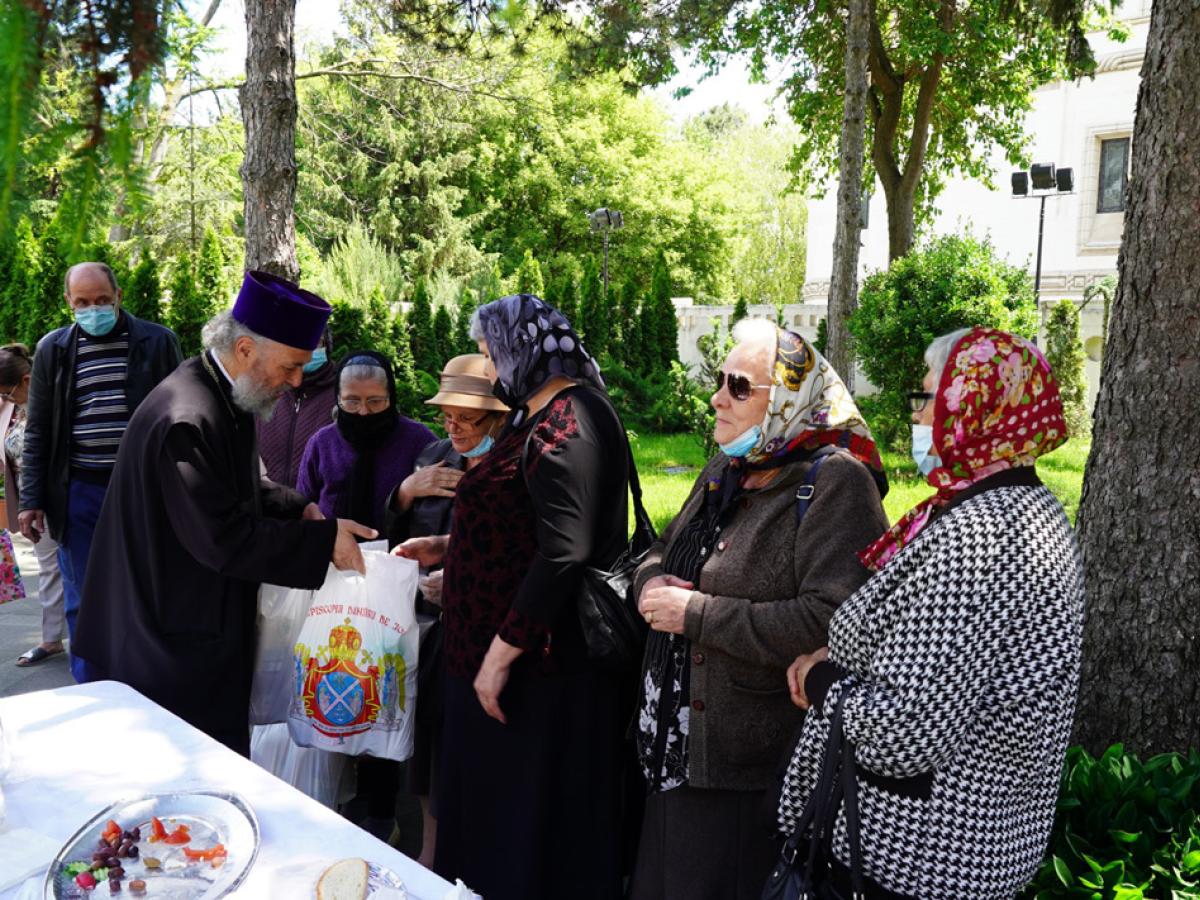 Evenimentul de la Catedrala Arhiepiscopală a continuat în parcul Reședinței Arhiepiscopale cu o agapă tradițională cu ouă roșii și cozonac, dedicată persoanelor cu deficiențe de vedere din cadrul Asociației Nevăzătorilor. La final, Părintele Arhiepiscop le-a dăruit oaspeților pachete cu alimente de primă necesitate și produse de igienă.